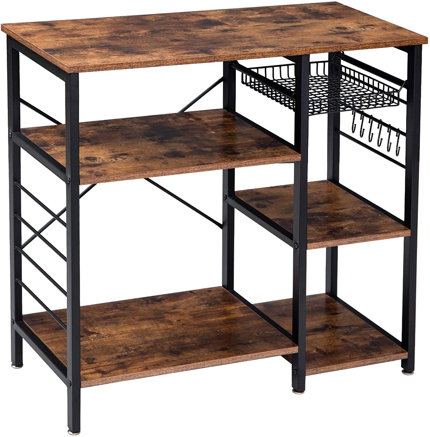 • Kitchen Organizer: Size at 35.5" W * 15.75" D * 33" H, this kitchen rack has massive space. The top shelf holds the microwave oven and other kitchen utensils. Storage shelves for toasters, spices, plates and other things you want, hooks can easily hang some cooking tools.