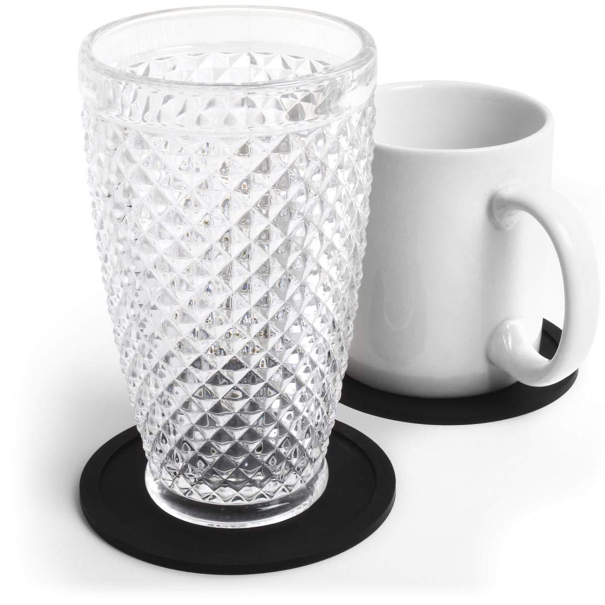 iGadgitz Home U6901 - BPA Free Silicone Coasters Non-slip Cup Mats, Pack of 8 - Round Shaped, 16oz Glass Size, Coffee Cups, Tea Cups & Bottles, Hot & Cold Drinks - Parties, Home, office & More - Black