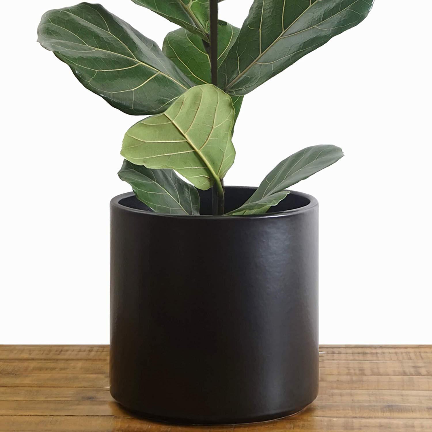 Indoor Flower Pot | Large Modern Planter, Terracotta Ceramic Plant Pot - Plant Container Great for Plant Stands (8.5 inch, Black)