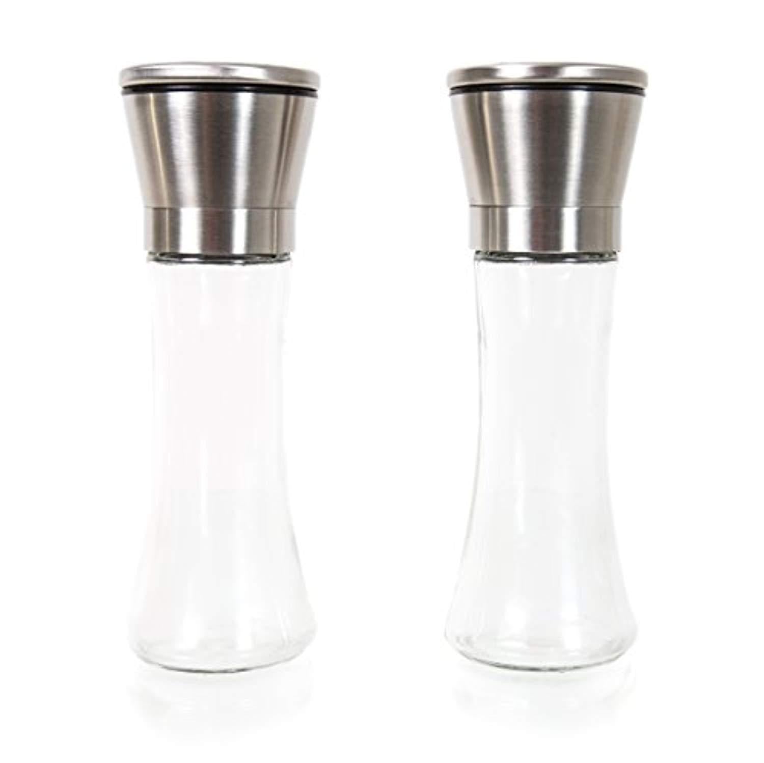 Inventory Liquidation Sale - Premium Tall Glass & Stainless Steel Salt and Pepper Grinder Set - Brushed Stainless Steel Pepper Mill and Salt Mill, Adjustable Ceramic Rotor By Simple Kitchen Products