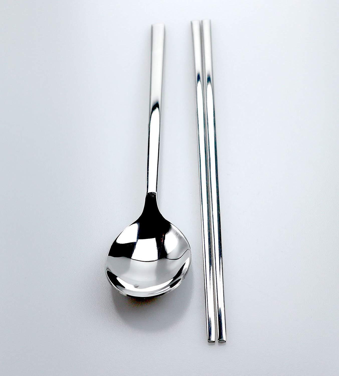 JBS Korean Chopsticks Spoon 1 Set Polished Stainless Steel Noodle Soup Restaurant Silver
