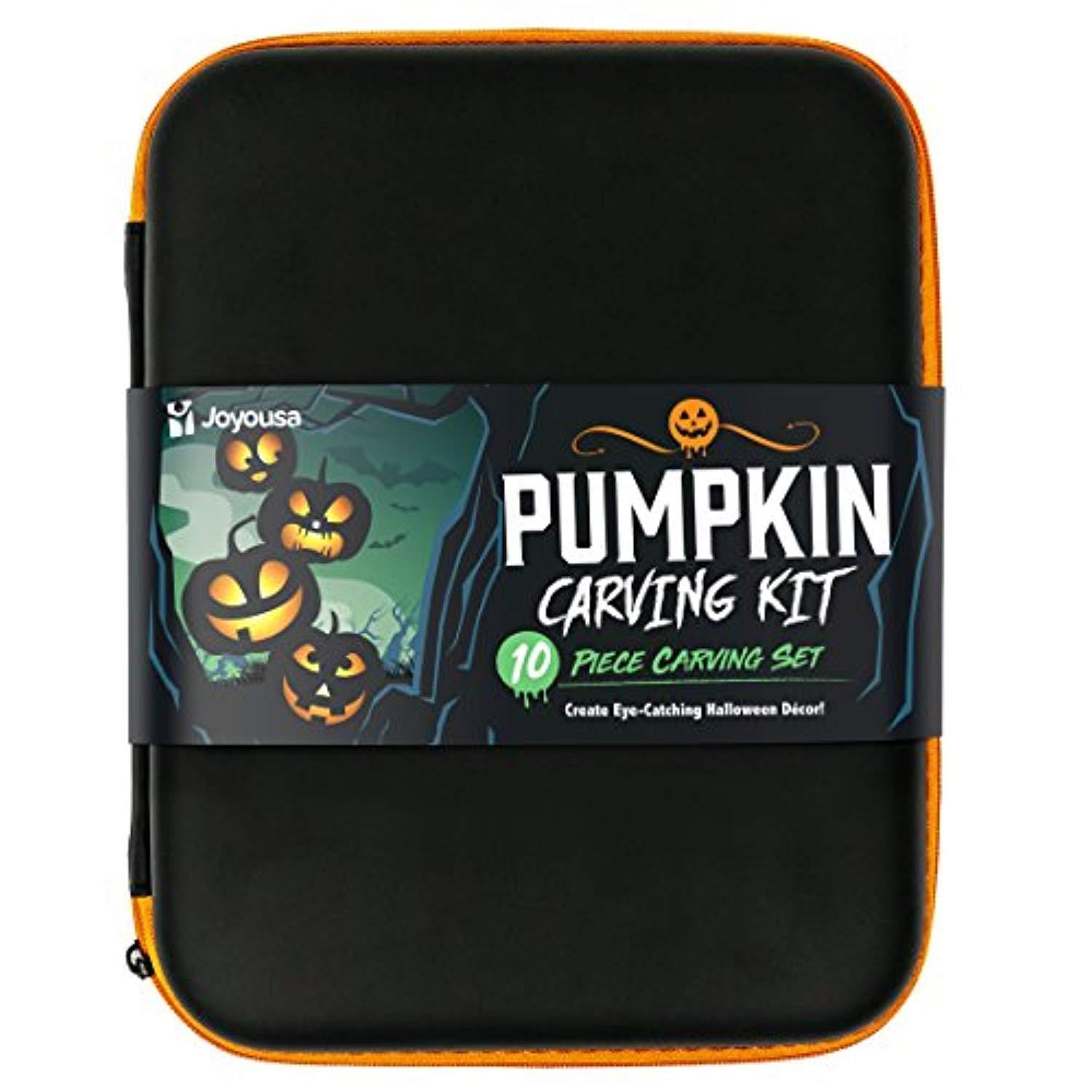 Joyousa Pumpkin Carving Tools Kit - 10 Piece Heavy Duty Stainless Steel Jack-O-Lantern Halloween Sculpting Set