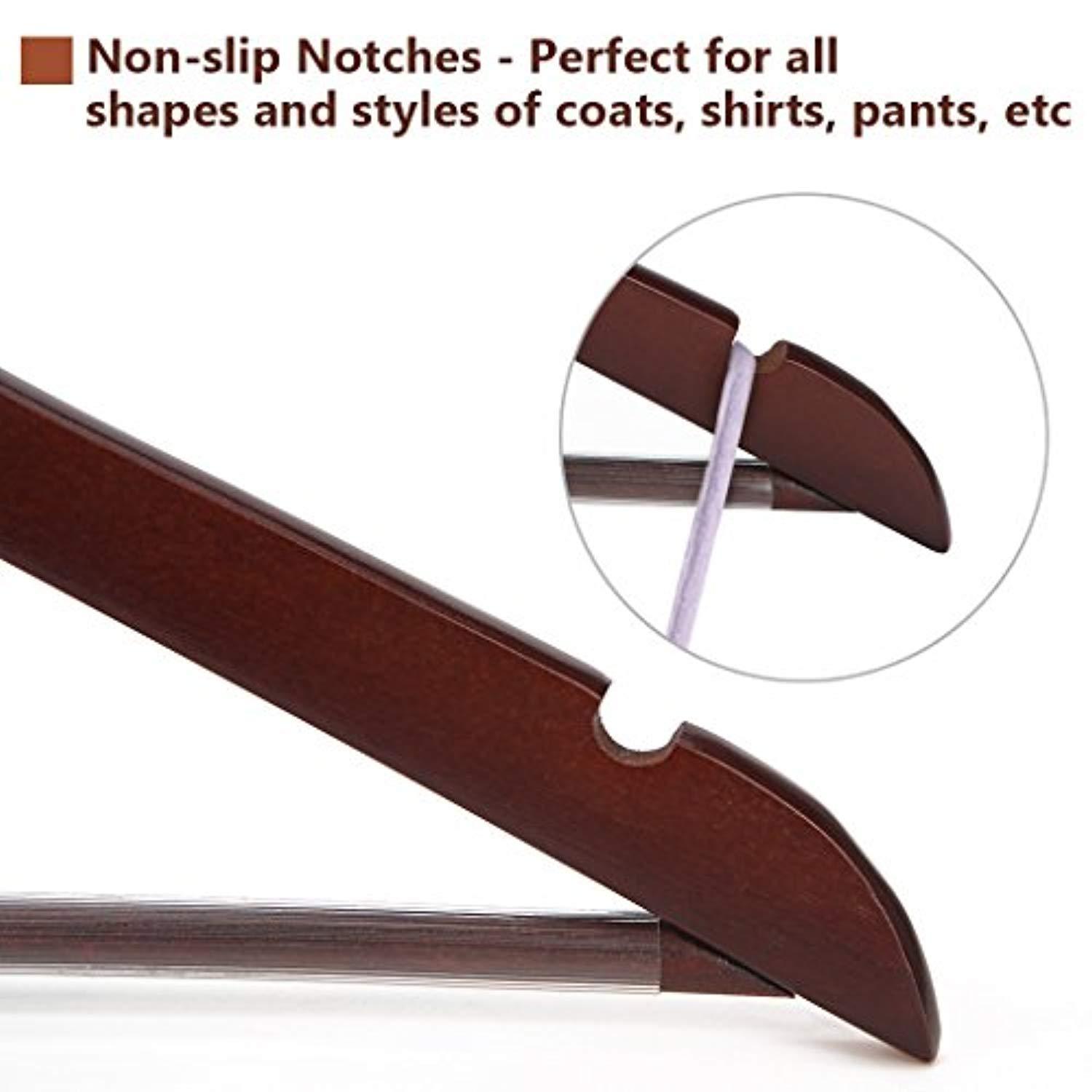 JS HANGER Multifunctional High Grade Solid Wooden Suit Hangers, Coat Hangers, Walnut Finish, 20-Pack