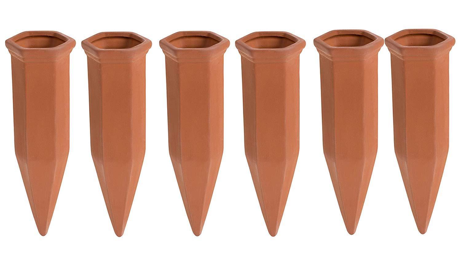 Juvale Self Watering Spikes - 6-Pack Terracotta Plant Watering Stakes, Automatic Slow Release Water Drippers for Indoor Outdoor Garden, Vacation Irrigation Device, Brown, 6.9 Inches Tall