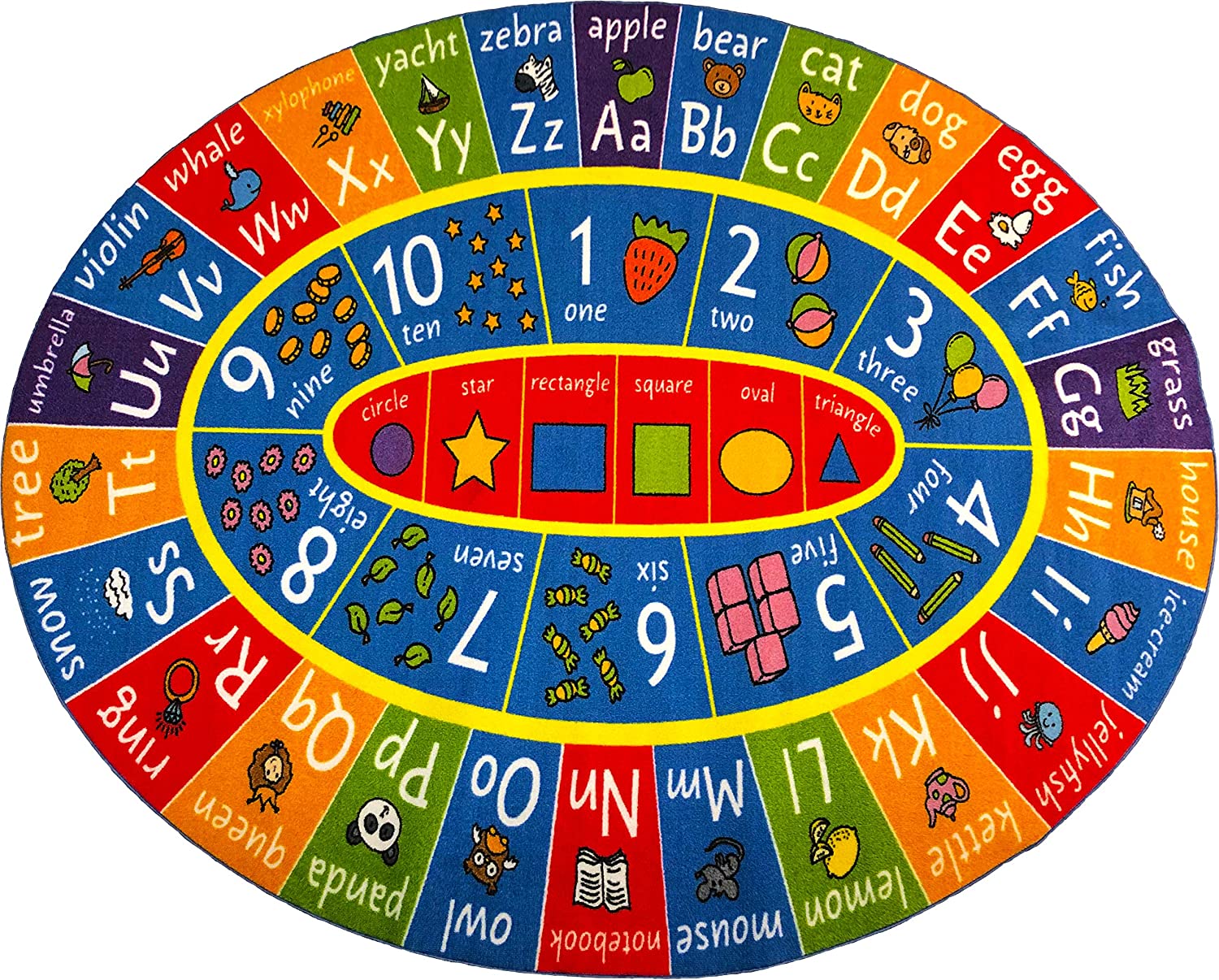 KC Cubs Playtime Collection ABC Alphabet, Numbers and Shapes Educational Learning & Game Area Oval Rug Carpet for Kids and Children Bedrooms and Playroom