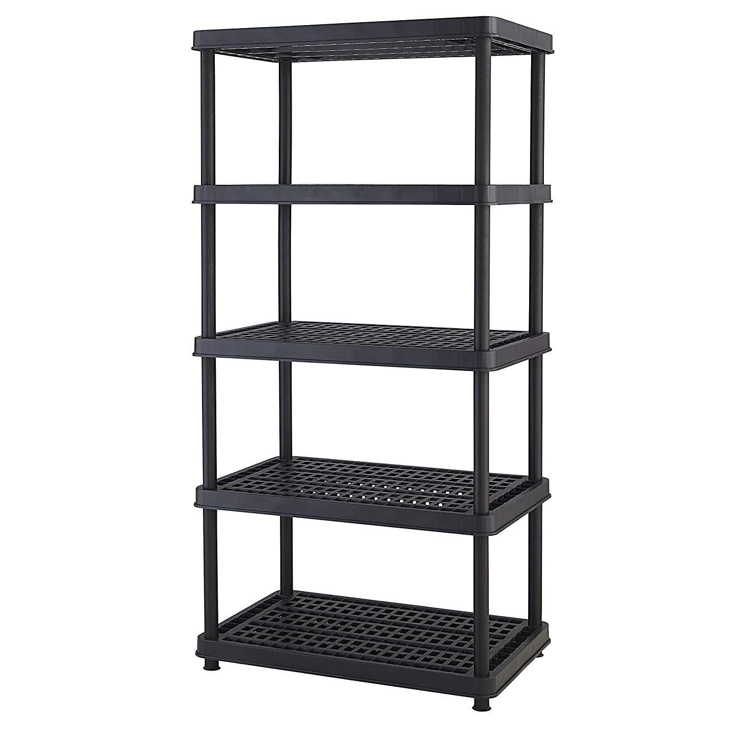 Keter 5-Shelf Heavy Duty Utility Plastic Freestanding Ventilated Shelving Unit, Black