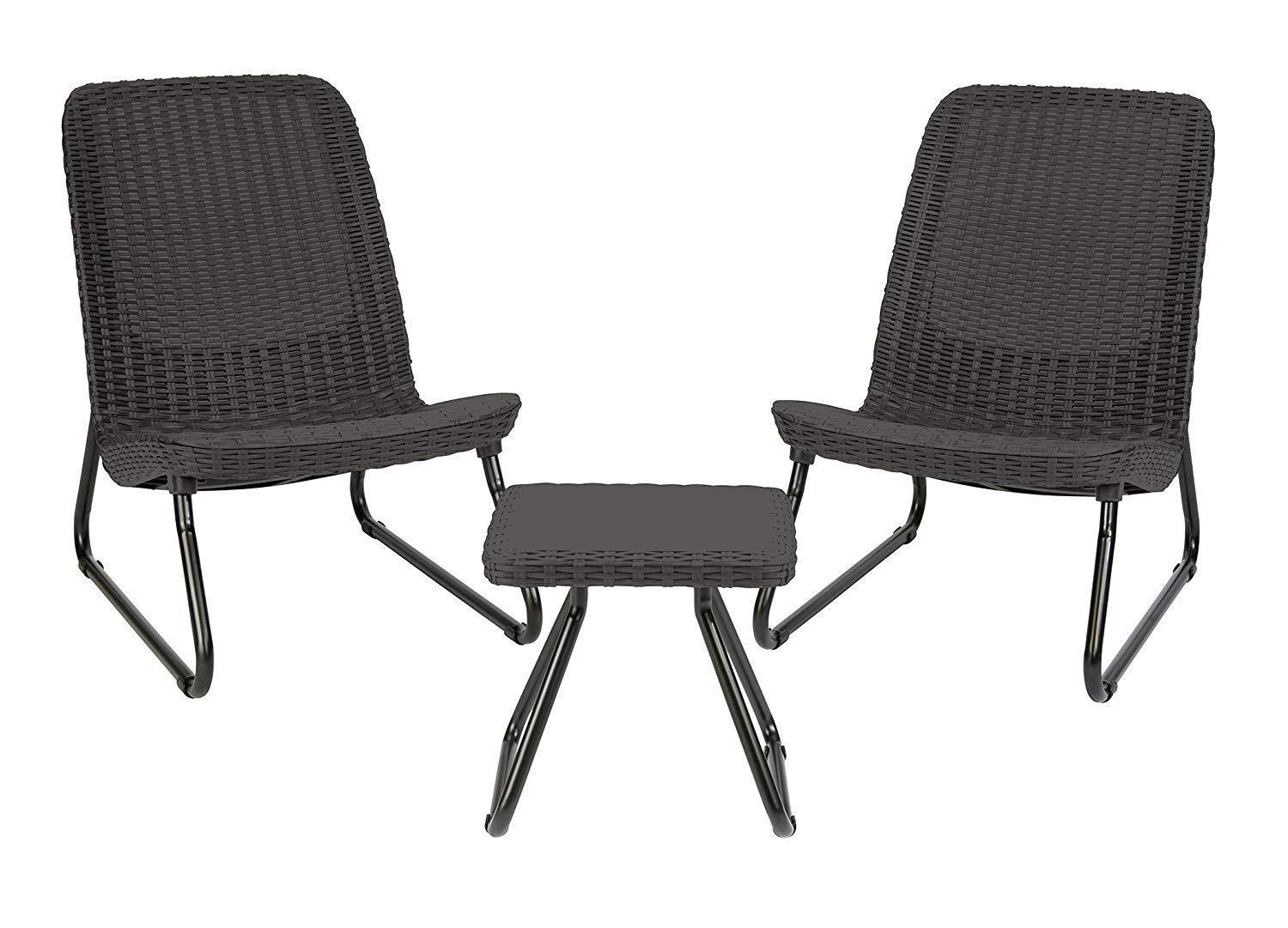Keter Rio 3 Pc All Weather Outdoor Patio Garden Conversation Chair & Table Set Furniture, Grey