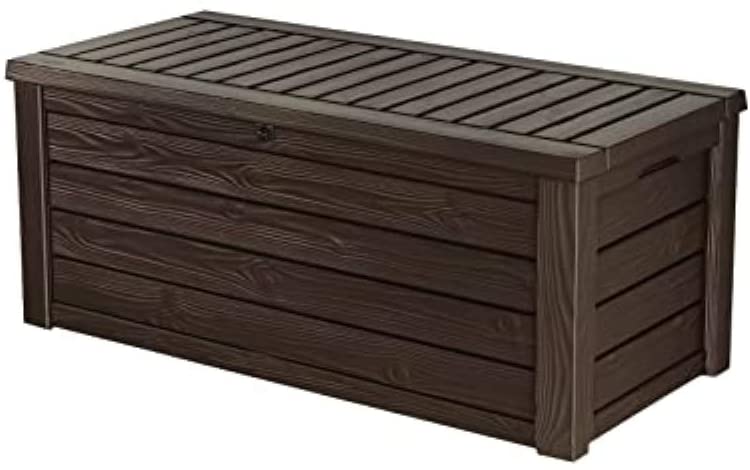 Keter Westwood 150 Gallon Resin Large Deck Box - Organization and Storage for Patio Furniture, Outdoor Cushions, Garden Tools and Pool Toys, Dark Grey