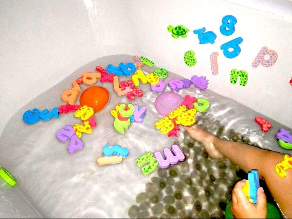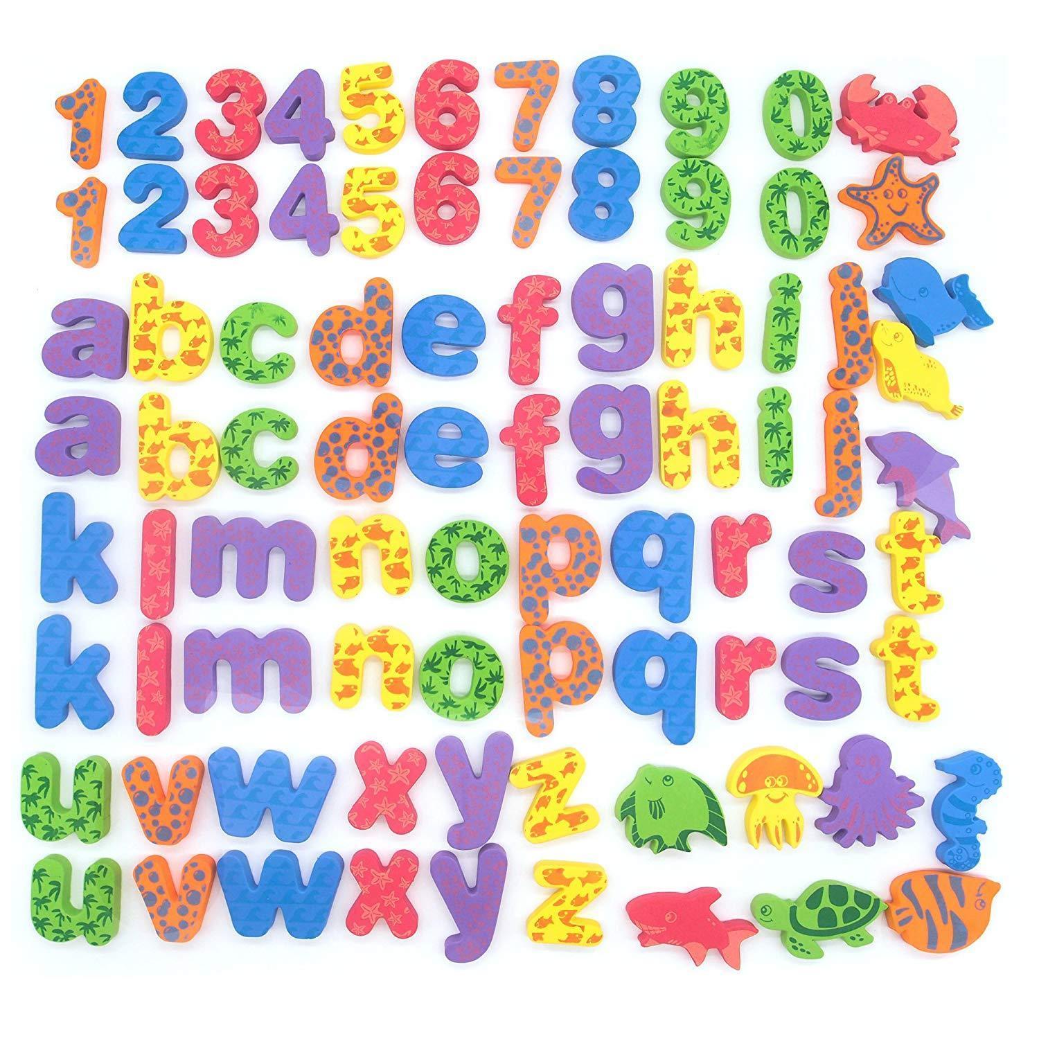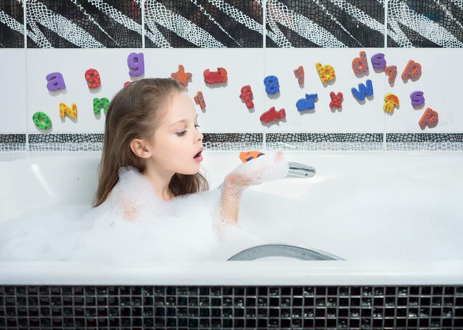 • UNBEATABLE VALUE BUNDLE - Not only do you possibly get the best quality mesh organizer, we also include fun & educational Alphabet bath toys. These baby bath bundle include 26pcs x 2 floating letters (A-Z) and 10pcs x 2 floating numbers (0-9), 12 pcs sea animals pattern, 84 pcs foam toys in total. The educational letters and numbers can stick to tub walls when wet. A wonderful baby shower gift for your loving ones.
