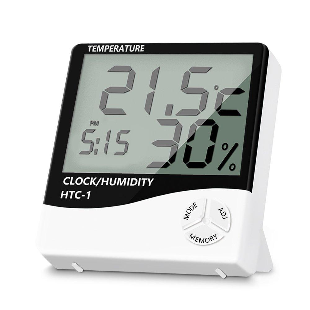 • Multifunctional - In humidity monitor, you can see the exact temperature of the indoor air on the big screen(Celsius or Fahrenheit), humidity and exact time. You can also use hygrometer digital as an alarm clock.