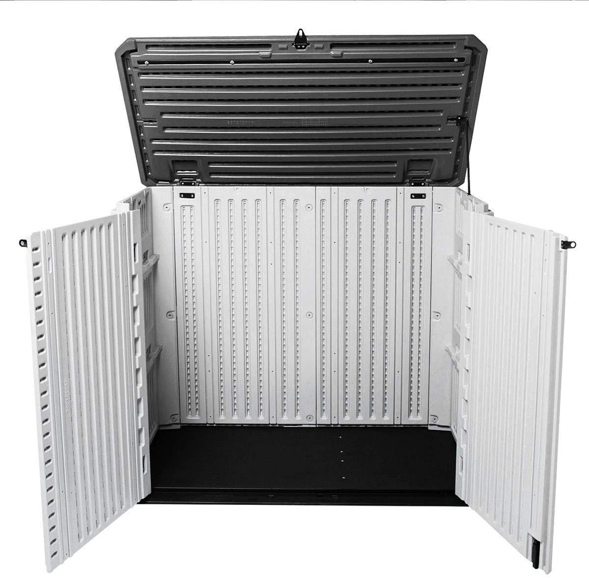 KINYING Horizontal Storage Sheds Outdoor with Floor - Multiple Opening Directions Convenient Storage Garbage Cans | Tools | Lawn Mower | Bike Multi-function Storage Cabinet for Backyards | Patios