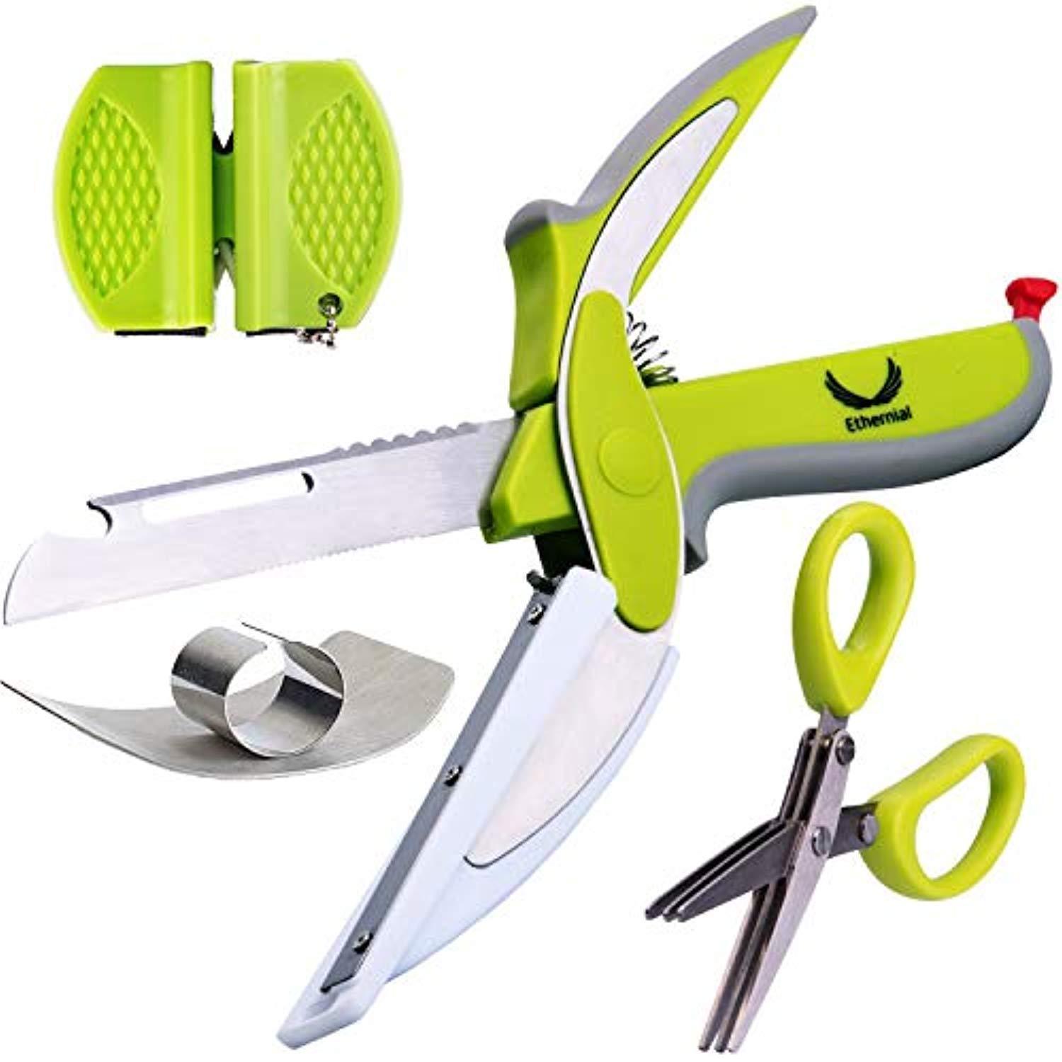 • 🧀ALWAYS BE PREPARED WHCH THE RIGHT KHCCHEN DEVICE: The all-purpose scissors for precision cutting completes the kit of cool cooking gadgets Ethernial brings you. The portable knife sharpener included will make sure the blades of your other kitchen choppers are sharp and ready to use. The herb scissors, along with the 6-in-1 smart knife and the durable knife sharpener make a useful kitchen set.