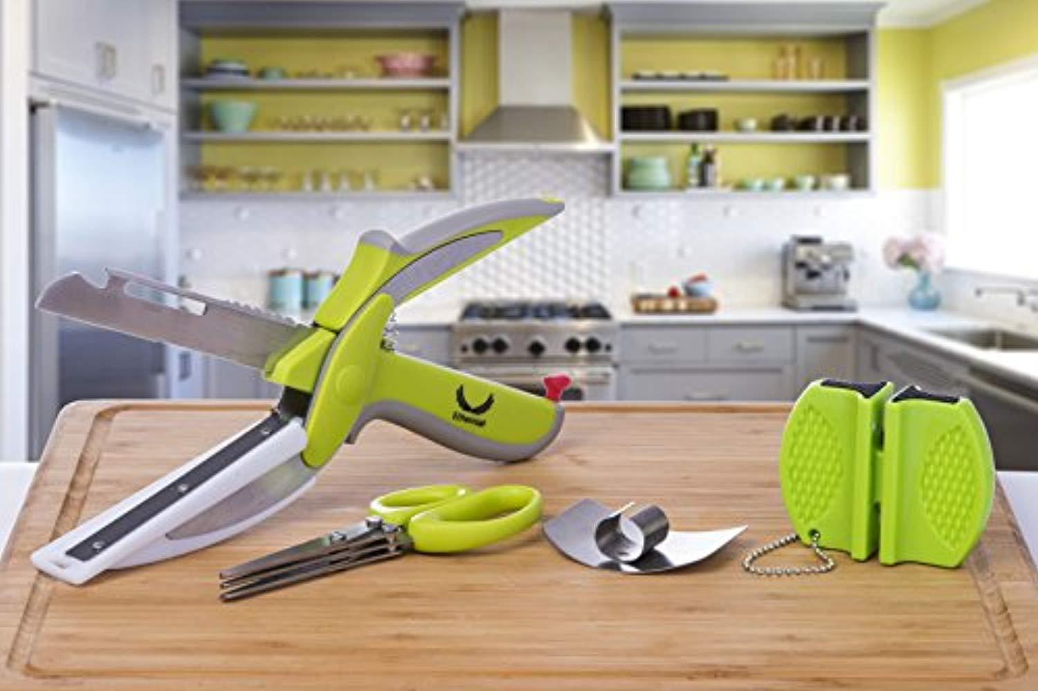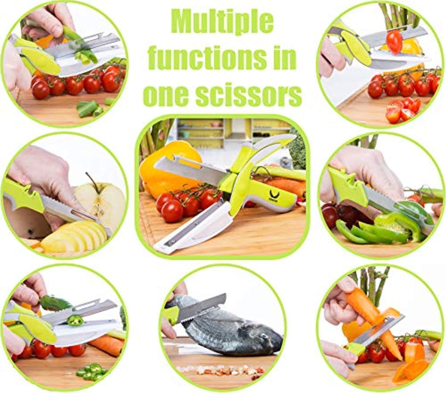 • 🍏 VERSATILE KHCCHEN SCISSORS FOR ALL YOUR NEEDS: The food chopping scissor combines the sharpness of the kitchen knife blade with the cutting board and blends them into a practical 6-in-1 food chopper.Use this to make great meals for the entire family.