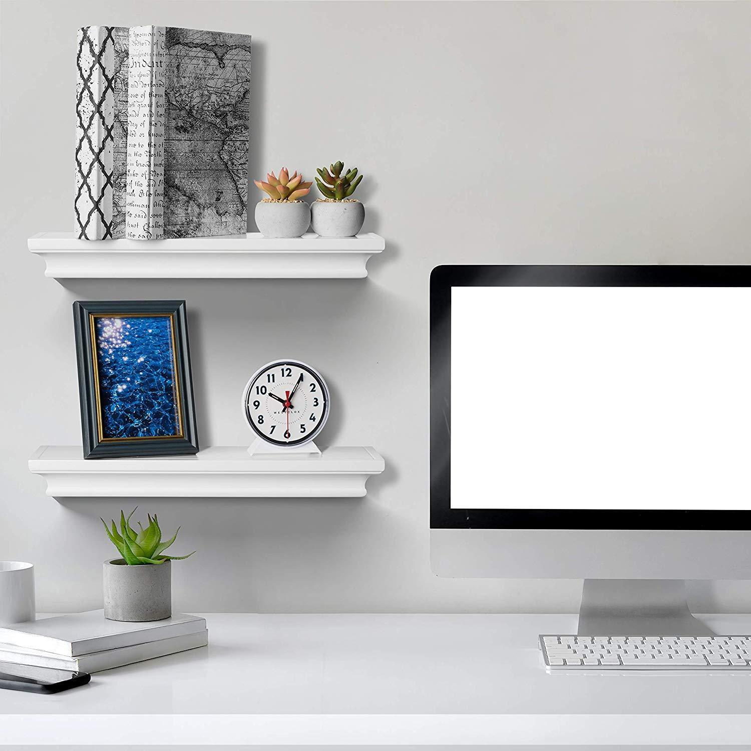 Kloveyleaf Floating Shelves Set of 2 Modern Style Shelves for Bedroom, Kitchen, or Bath, Includes Wall Mounting Hardware (White)