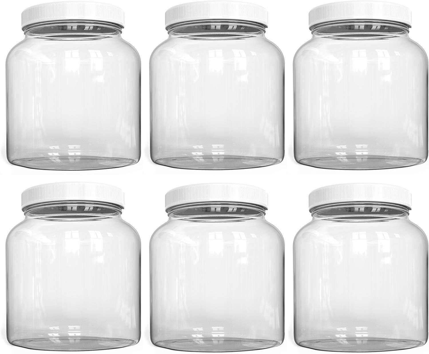 KombuJars ½ Half Gallon GLASS Jars 64 oz Airtight Lined Seal Plastic Lid Cap, Wide Mouth Jar, Brewing Fermenting Kombucha, Storage Bottles Kefir Canning, Clear, Multi-use Mason (6)
