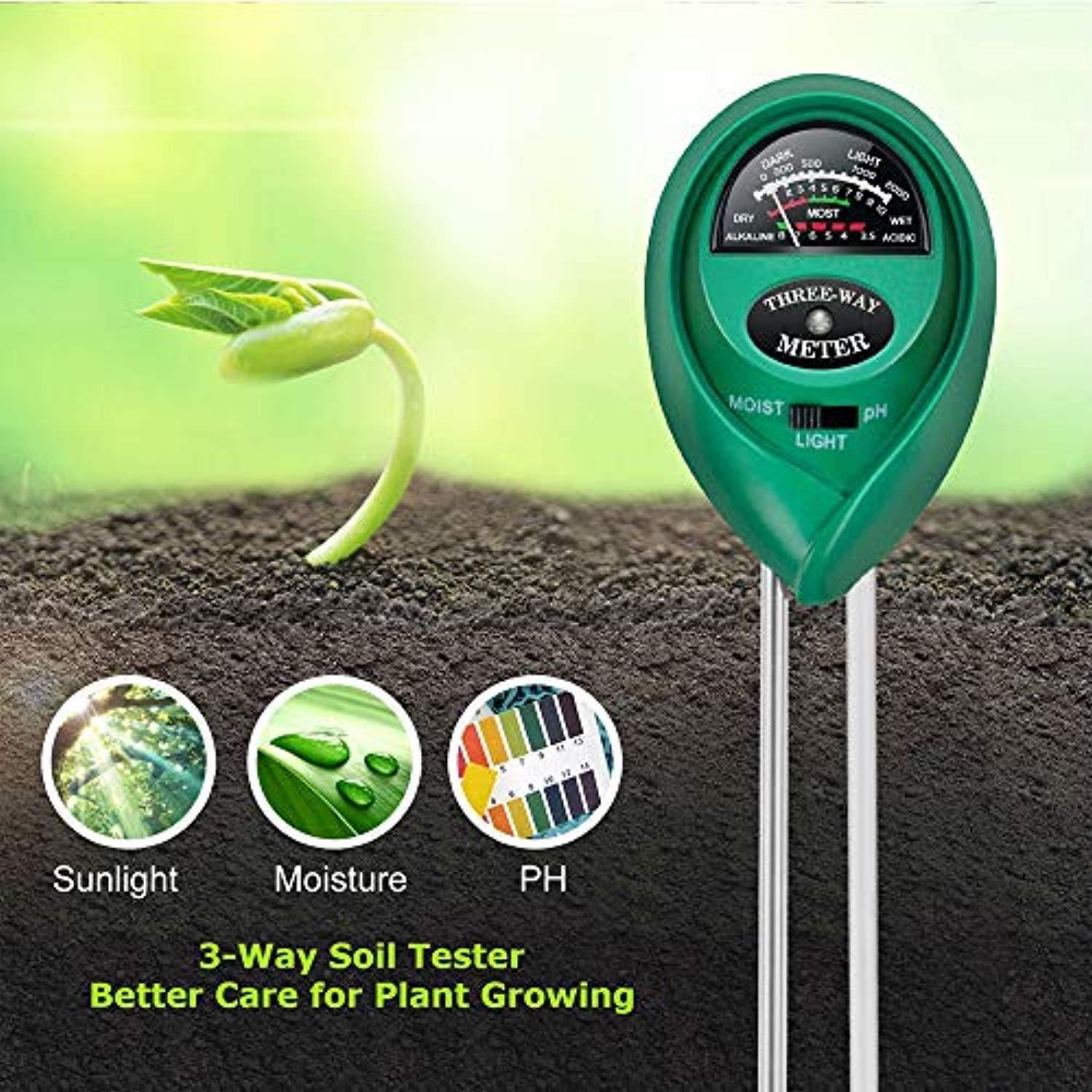 • 3 IN 1 DESIGN (Moisture/PH/Light METER) provides you a comprehensive idea about the soil condition of your garden and lawn. Quickly helps you specialize in grasping when you need to water your plant, control the pH value in the soil and know about whether it gets adequate sunlight.
