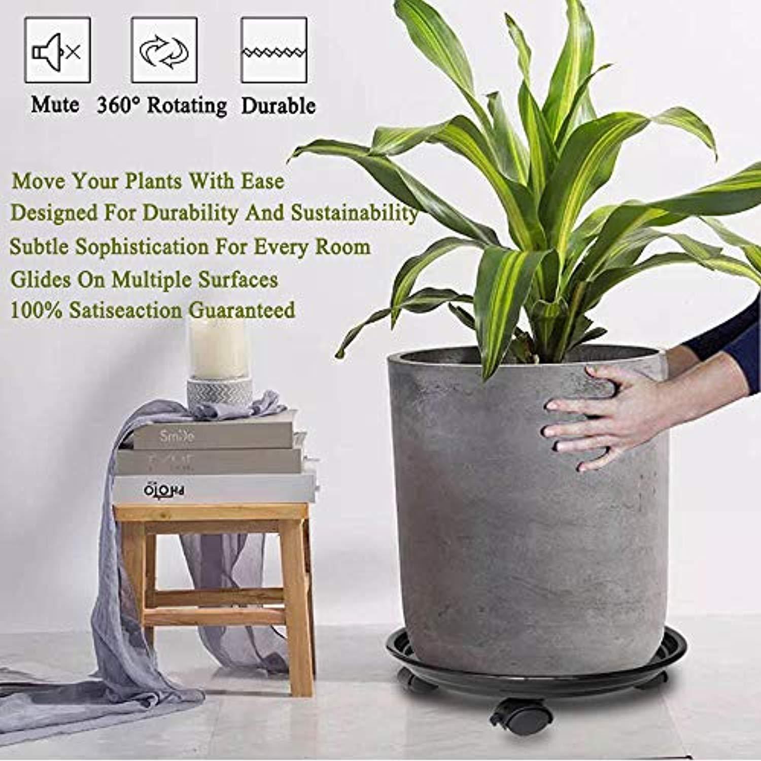 • ▶OUTDOOR USE & NON-STUCK ON CARPET: This heavy duty patio plant caddy with wheels is made of black strengthening resin will enable you to use the garden plant caster with wheels outdoors durably. The rolling plant stand with black fine surface will nicely compliment your patio, garden, yard or deck. Plant dolly or plant tray with wheels can be freely moved on house floor, even on the carpet, soil ground and lawn.