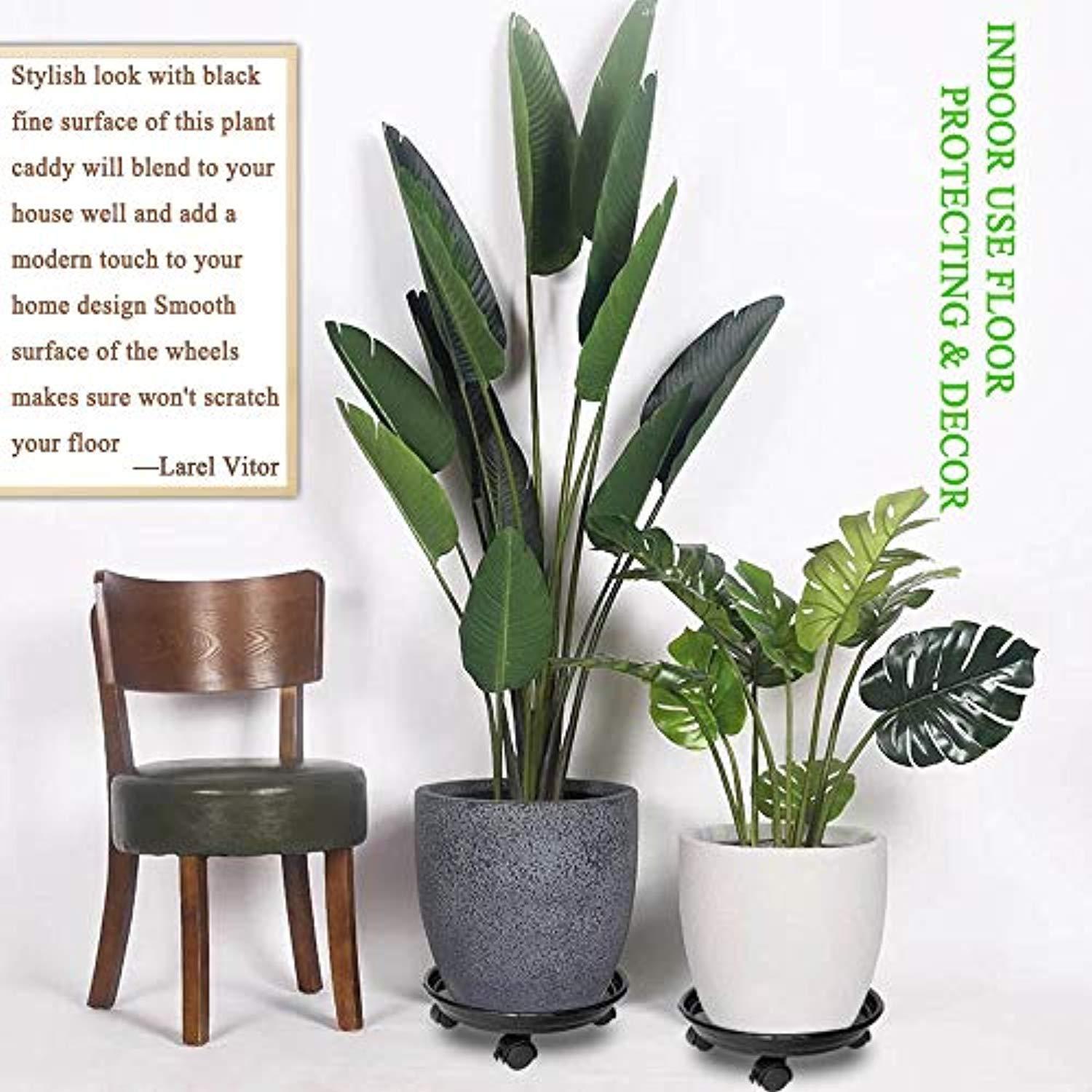 • ▶INDOOR USE FLOOR PROTECTING & DECOR: This floor flower pot rack is with smooth wheels, no more worry that your expensive floor may be worn out. The plant rolling caddy with aesthetic design adds a stylish and nature touch to your home. The fine black coating makes this plant roller with casters itself a decorative element that fits any house design and add more delights to your life. Plant container stand with wheels is of an architectural structure that is stable.