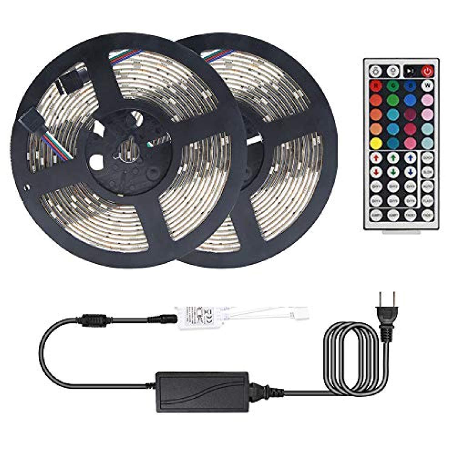 LED Strip Lights,Petsmoe LED Light Strip Tape Lights Waterproof 32.8 Ft 5050 RGB 300 Leds DC 12V Power Supply 44 Key IR Remote Controller,Strong Sponge Adhesive Tape For Bedroom,Living Room,Kitchen.