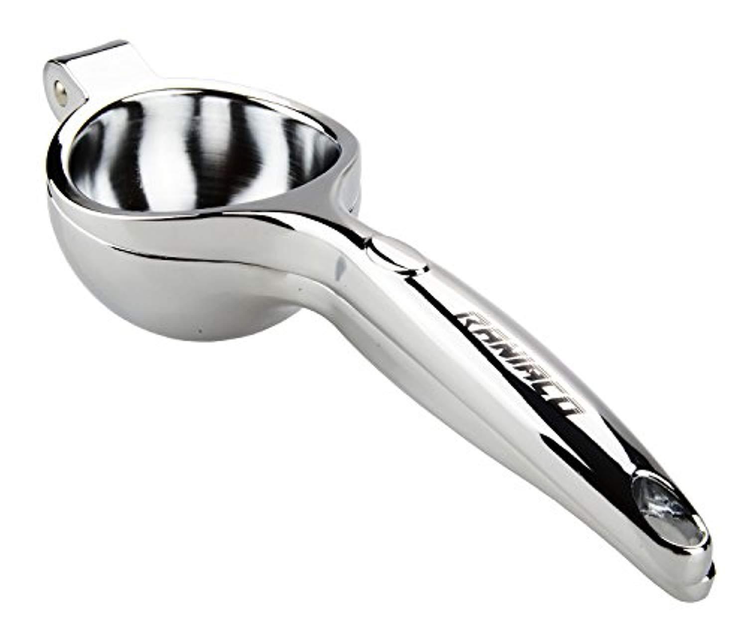 • PREMIUM QUALITY IN DESIGN AND MATERIAL: The sturdy built of lemon squeezer allows you to extract lemon or other juice from the fruits without a hassle. This lemon juicer helps you to extract every single drop of juice and flavor leaving the skin and the seeds behind.