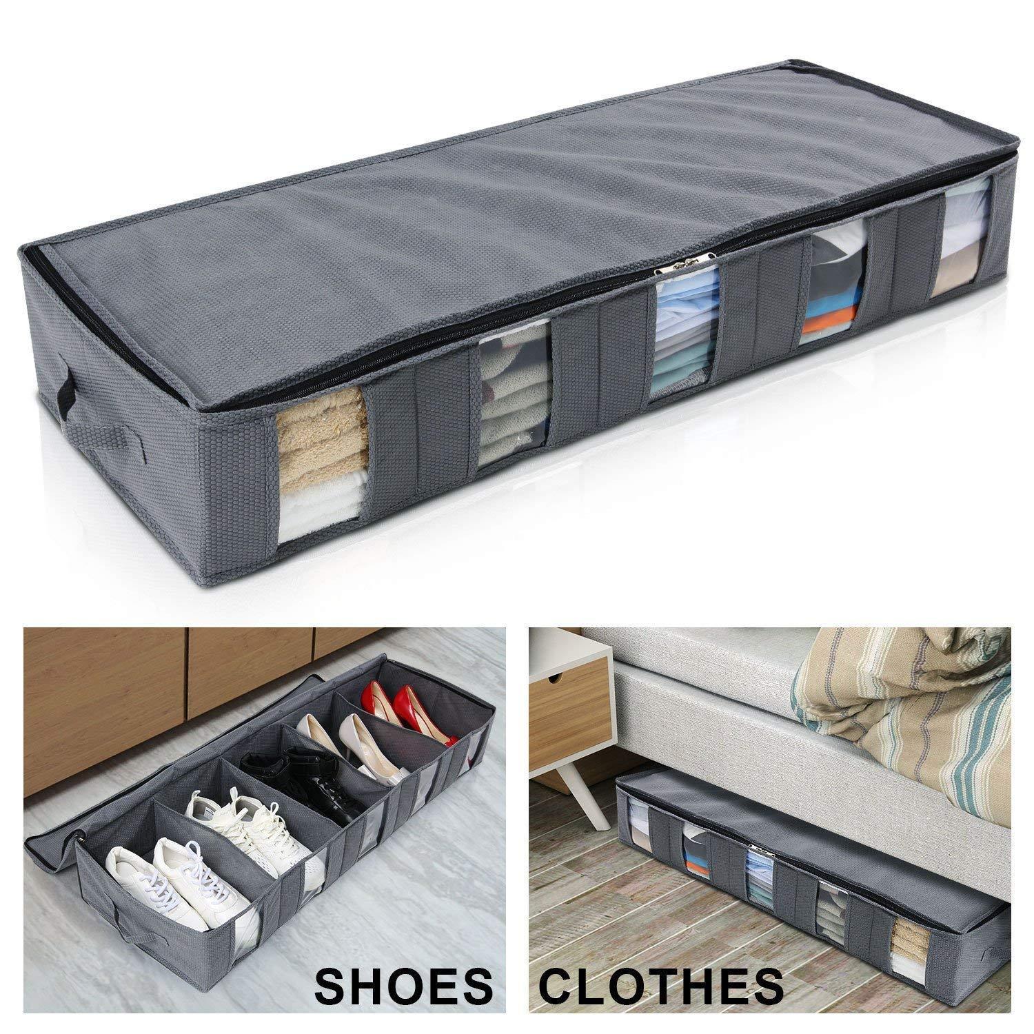 Lifewit Large Capacity Under Bed Storage Bag with 5 Clear Window for Clothing, Shoes, Blankets, Clothes, Sweaters, Set of 2, Grey