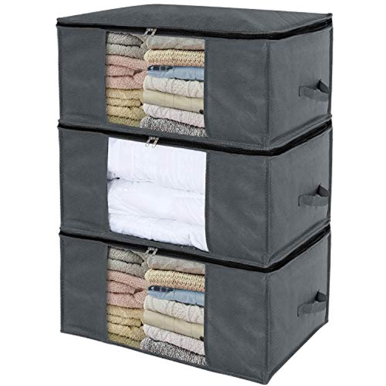 Lifewit Set of 3 Large Clothes Storage Bag for Comforters, Blankets, Bedding, Pillow, Breathable Foldable Closet Organizer with Clear Window, Grey