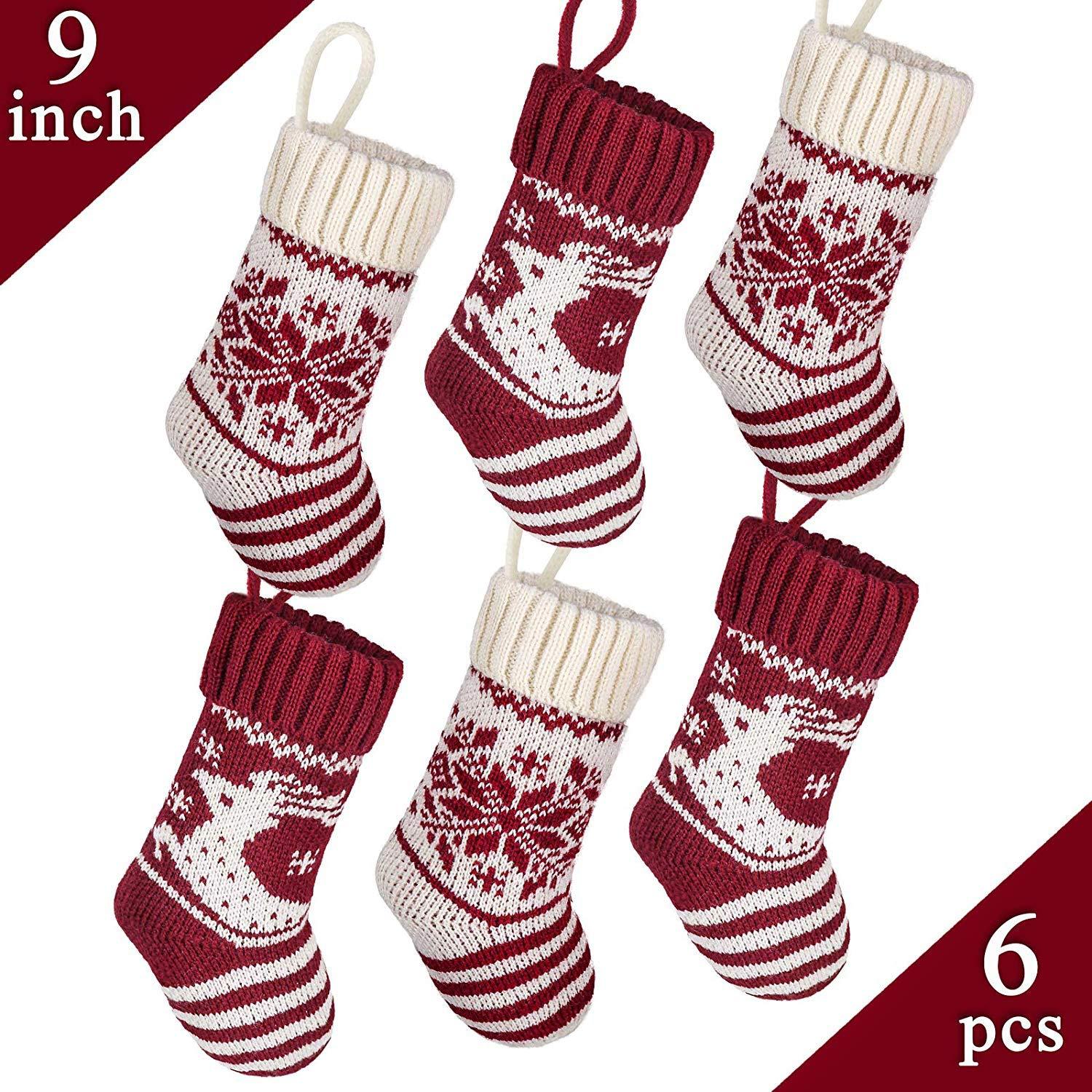 • Value pack of 6 rustic knit Christmas stockings, 9" mini size. Beautiful holiday decor, ready to hang on stocking holders on fireplace mantel. Create precious holiday memories.