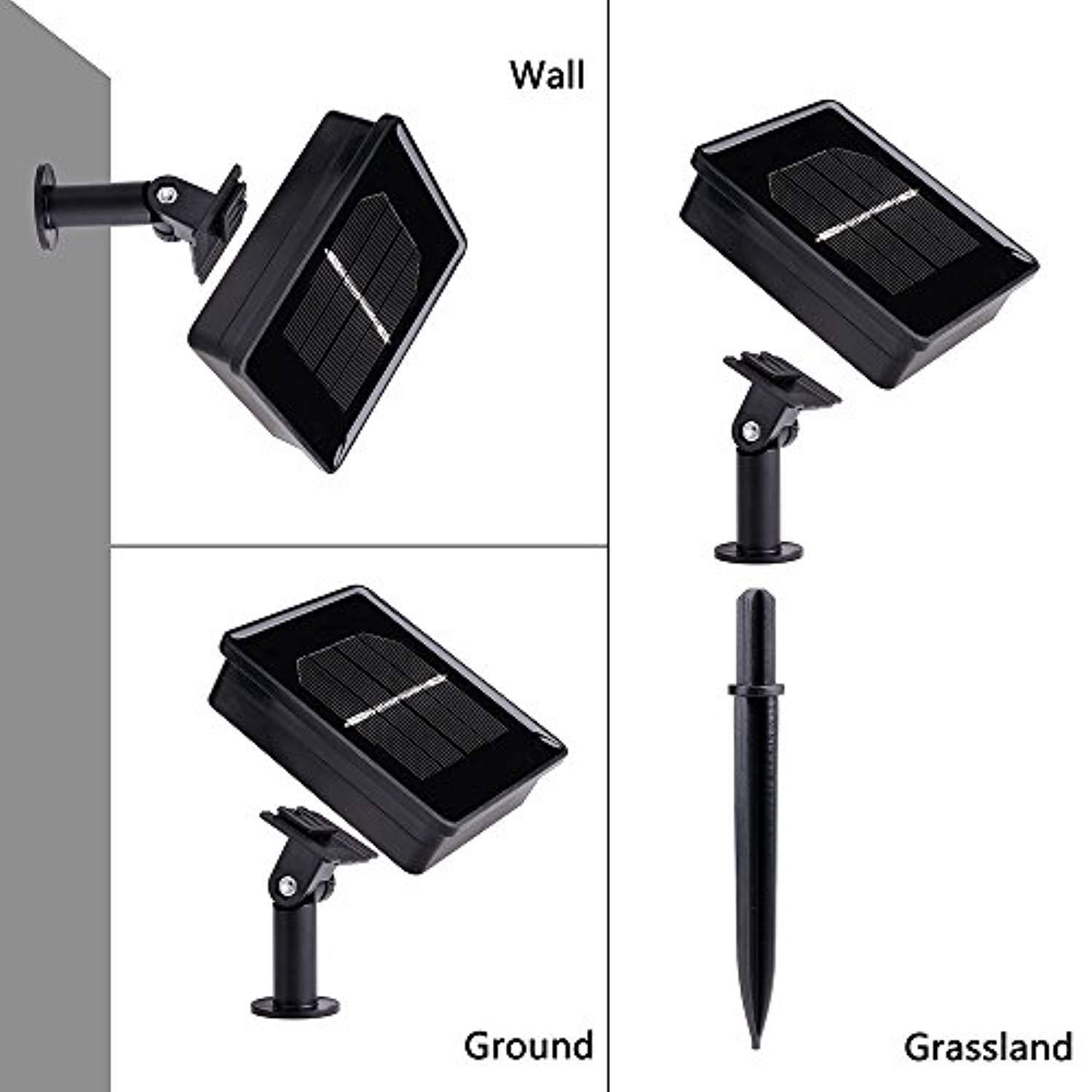 • ✔️ EASY INSTALLATION LED STRING LIGHTS: No wire required. 2 in 1 stake allow you to stick into the ground or use included screws to mount on the wall, the solar panel box is separated from the string lights with a waterproof connector on each part