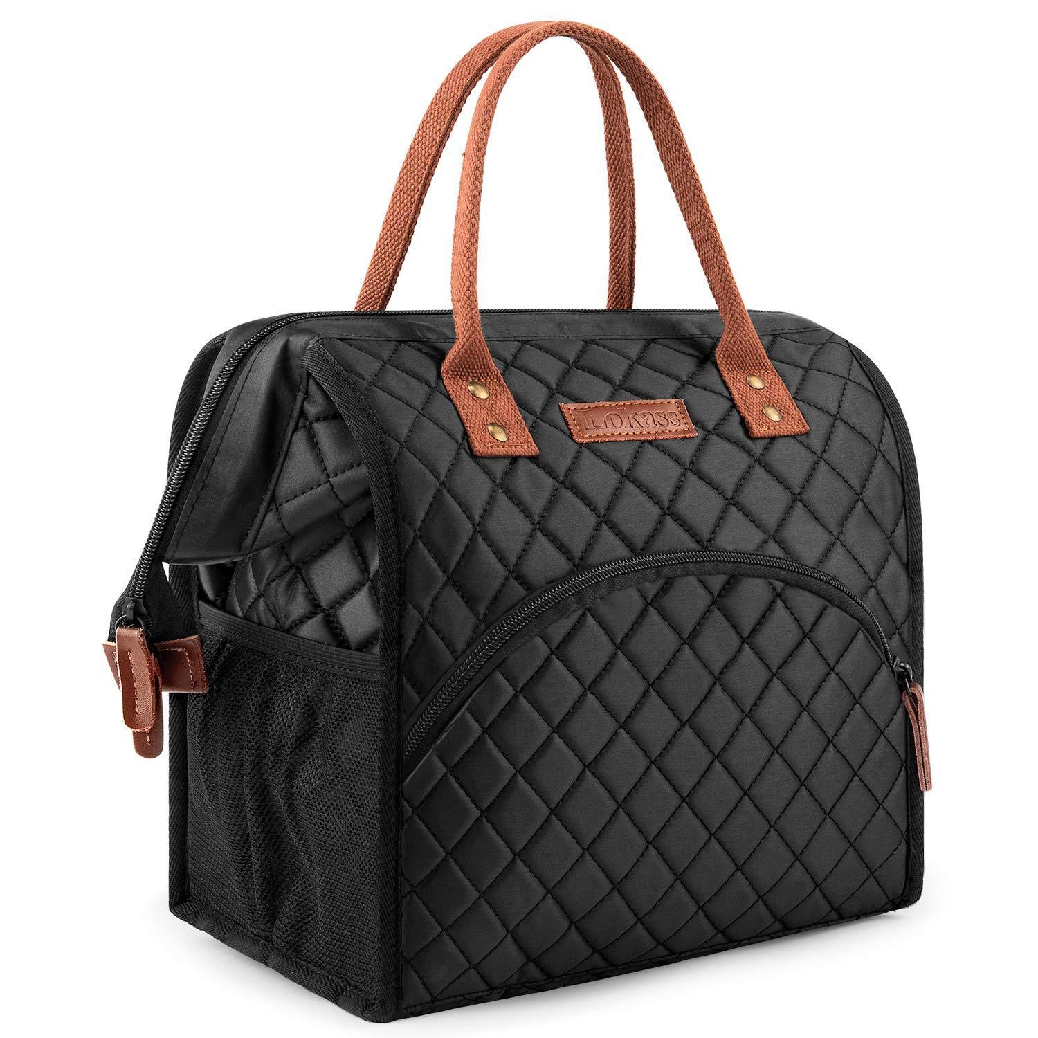 LOKASS Lunch Bag Insulated Lunch Box Wide-Open Lunch Tote Bag Large Drinks Holder Durable Nylon Thermal Snack Organizer for Women Men Adults College Work Picnic Hiking Beach Fishing,Feather