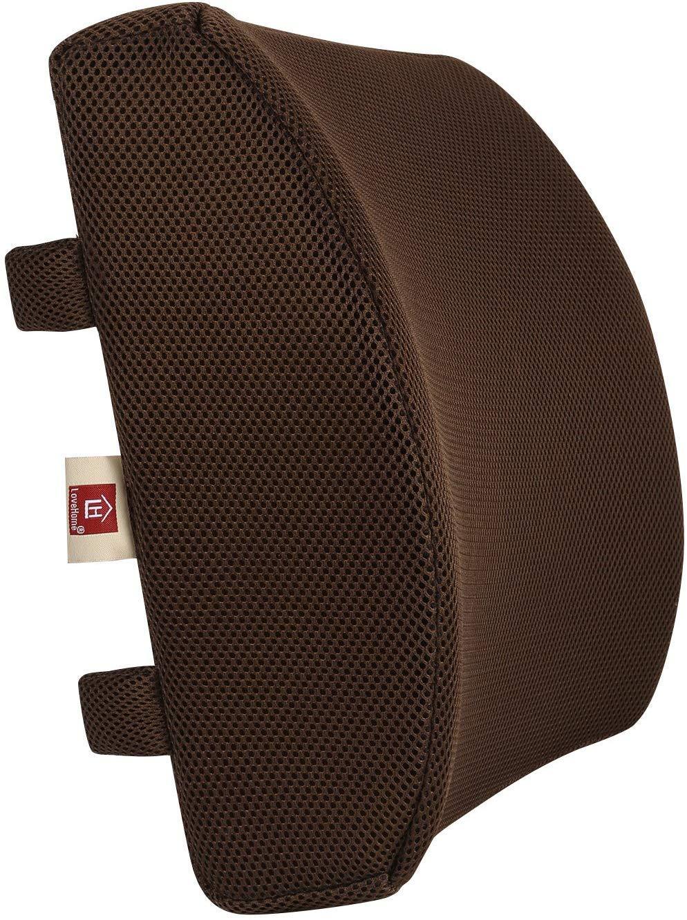 LoveHome Memory Foam Lumbar Support Back Cushion with 3D Mesh Cover Balanced Firmness Designed for Lower Back Pain Relief- Ideal Back Pillow for Computer/Office Chair, Car Seat, Recliner etc. - Black