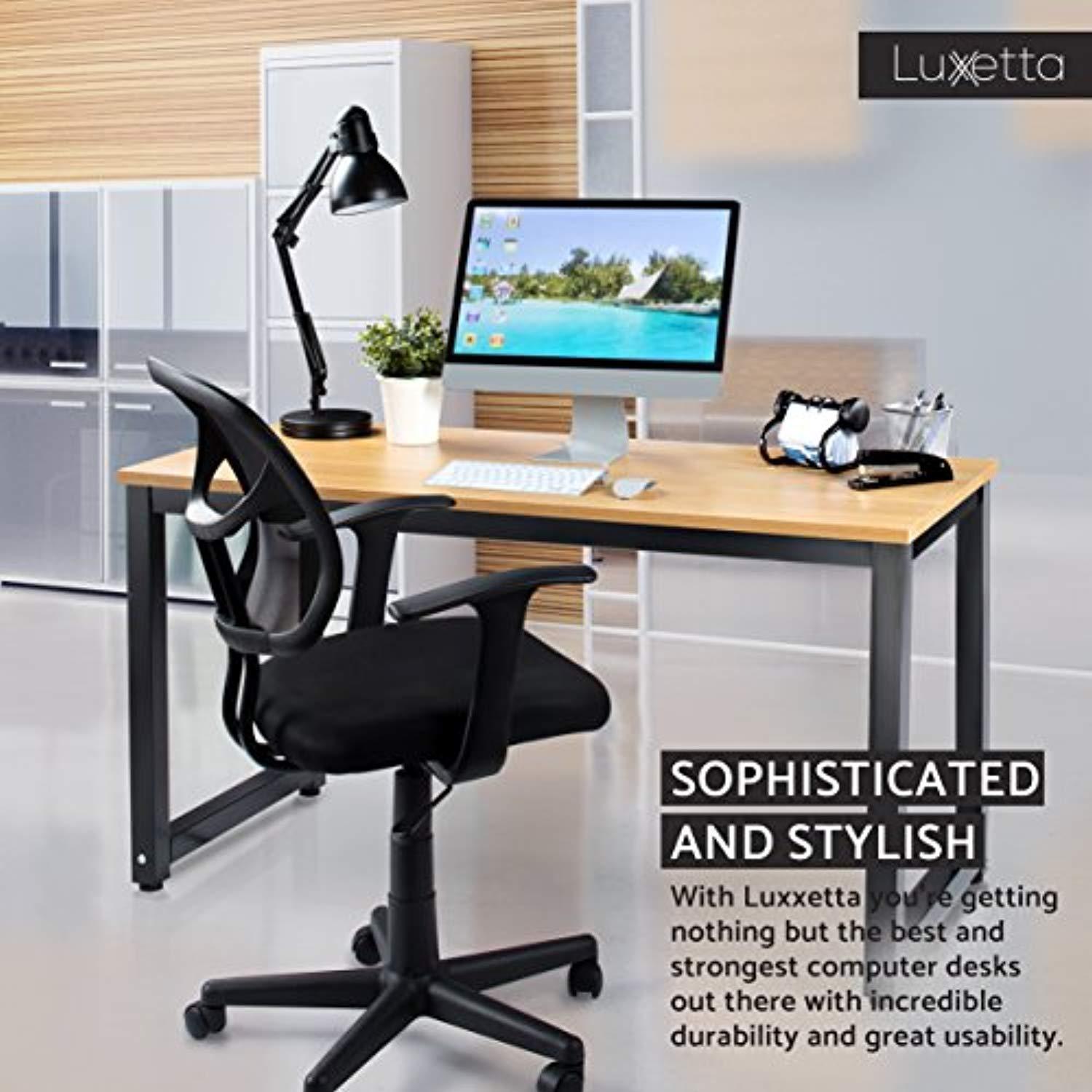 Luxxetta Office Computer Desk – 55” x 23” White Laminated Wooden Particleboard Table and Black Powder Coated Steel Frame - Work or Home – Easy Assembly - Tools and Instructions Included