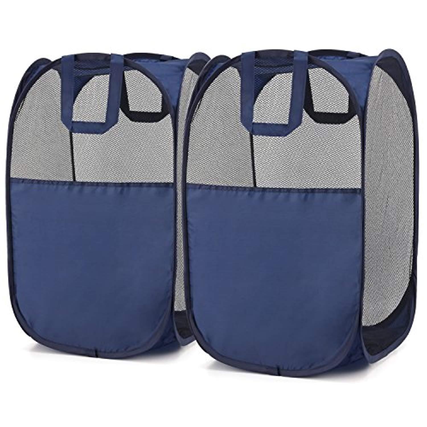 Magicfly Pop-Up Hamper, Foldable Pop-Up Mesh Hamper with Reinforced Carry Handles, Laundry Mesh Basket Blue, Pack of 2