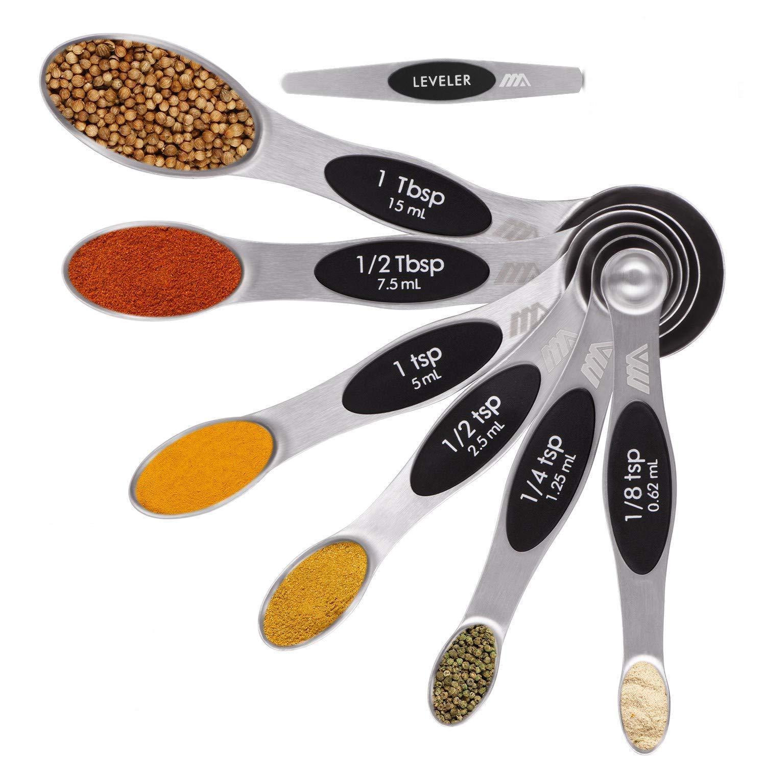 Magnetic Measuring Spoons, Set of 7 Stainless Steel Spoons with Leveler,Double-Sided Spoons, Stackable Teaspoon and Tablespoon for Dry and Liquid Ingredients- for Home Kitchen