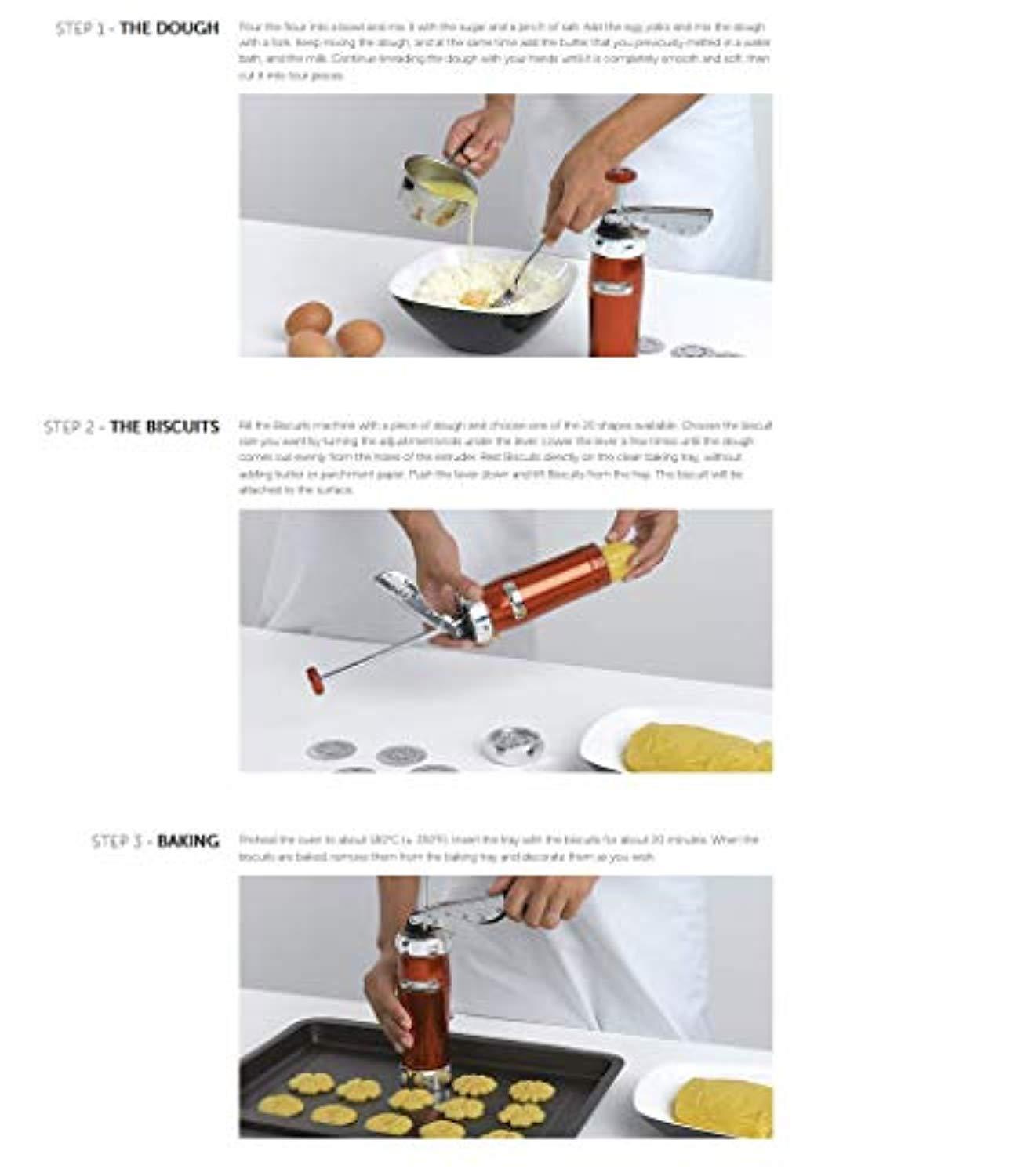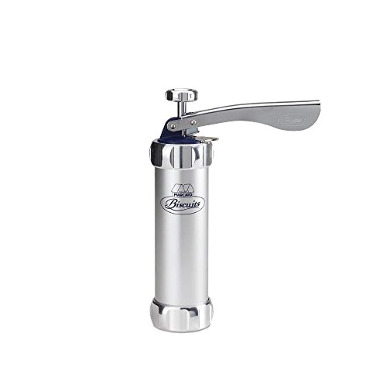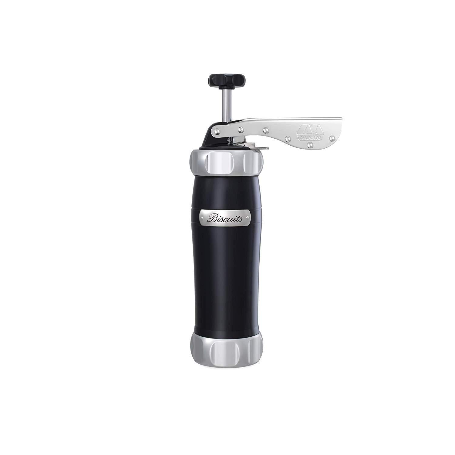 • Marcato’s Classic Atlas Biscuit Maker extrudes firm dough into creative shapes for easy cookies and other treats without rolling or cutting dough