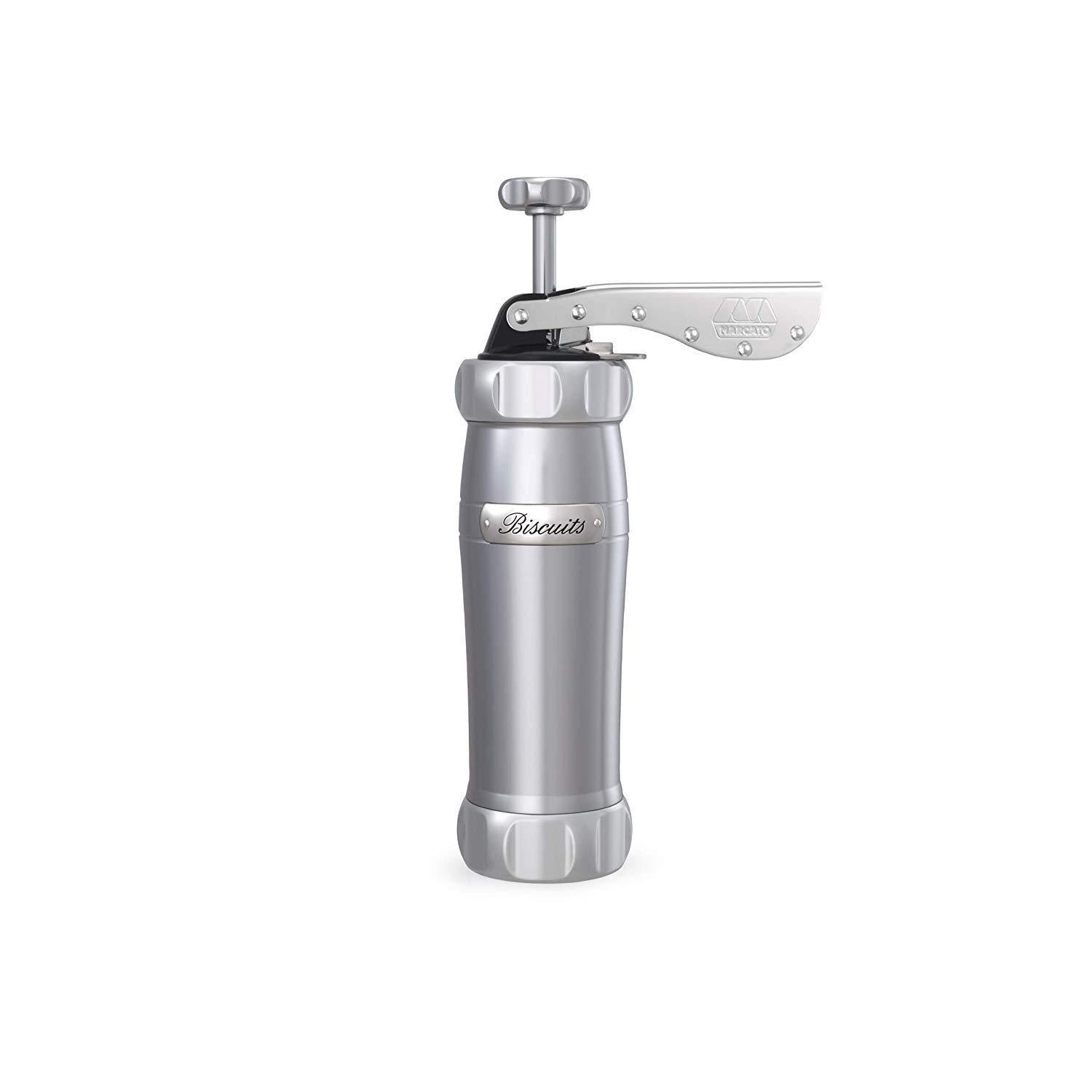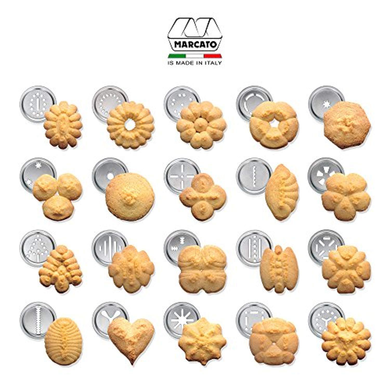 Marcato 8307 Atlas Deluxe Biscuit Maker Press, Made in Italy, Stainless Steel, Includes 20 Cookie Disc Shapes, Silver