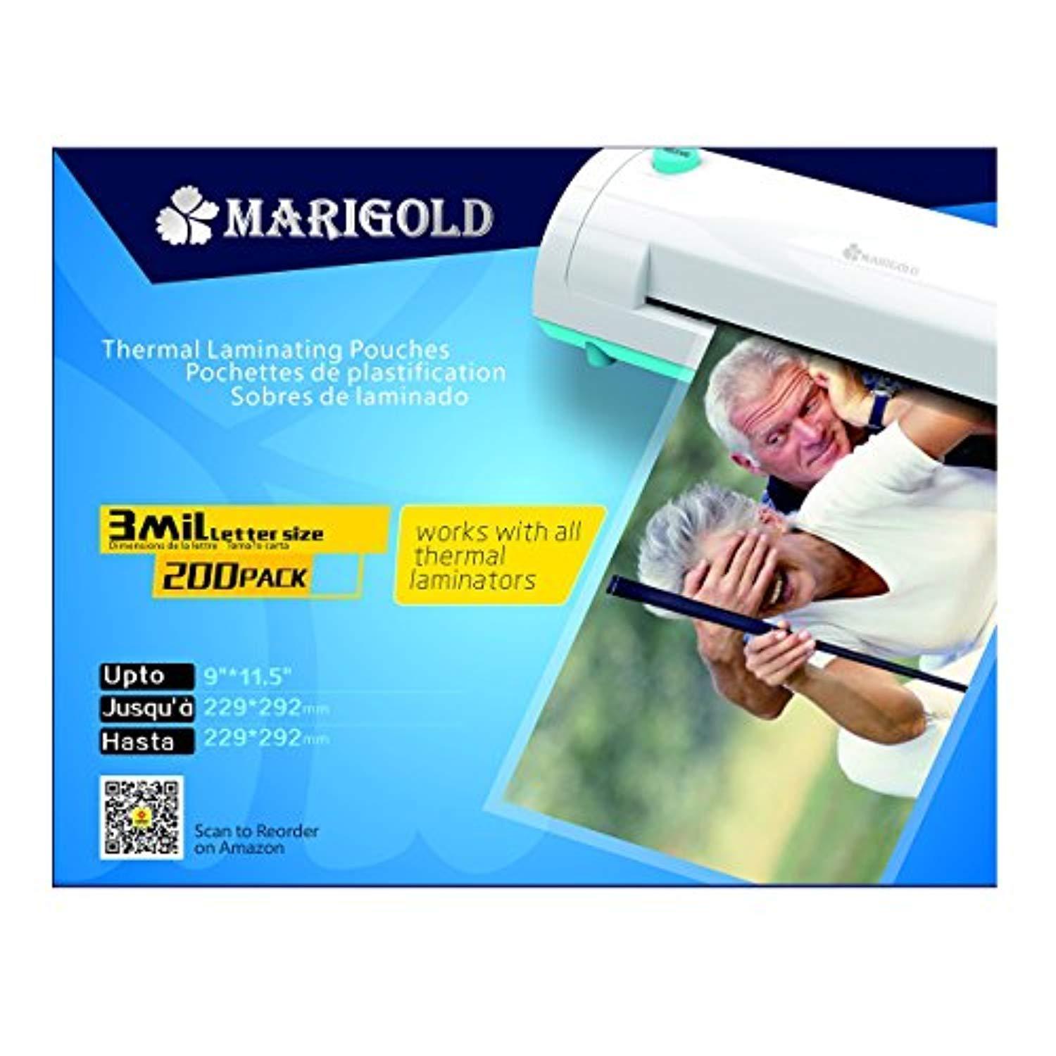 Marigold 205-Count Pack 3 mil Letter Size, 9"x11.5", Thermal Laminating Pouches Laminator Film Sheets for Laminator Machine (TLP3LTR)