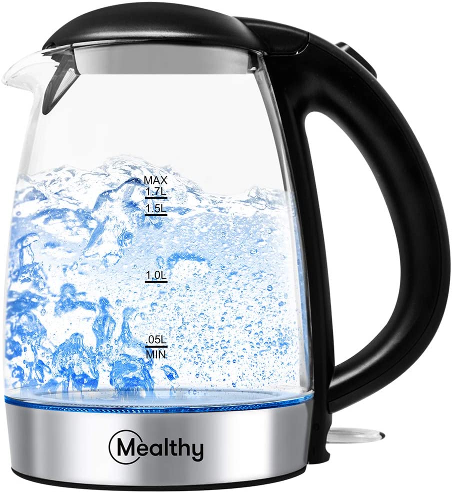 Mealthy Electric Kettle - Made with high quality Glass and is BPA-Free, 1.7 liter with Auto Shut-Off, Boiler & Tea Heater with LED Indicator Light, Boil-Dry Protection, 100% Stainless Steel