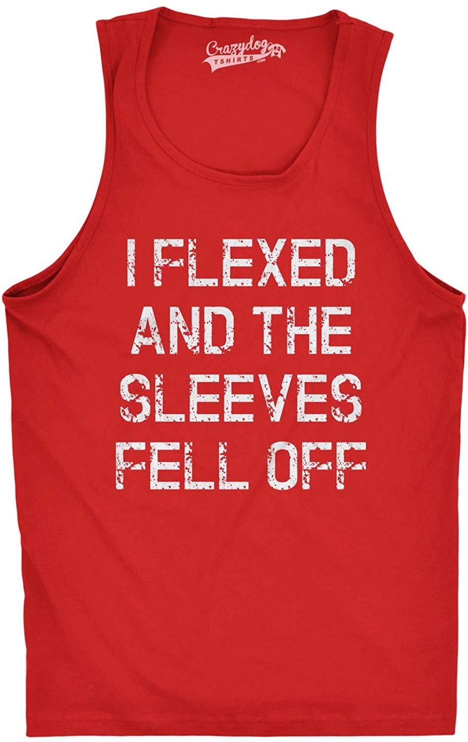 Mens I Flexed and The Sleeves Fell Off Tank Top Funny Sleeveless Gym Workout Shirt