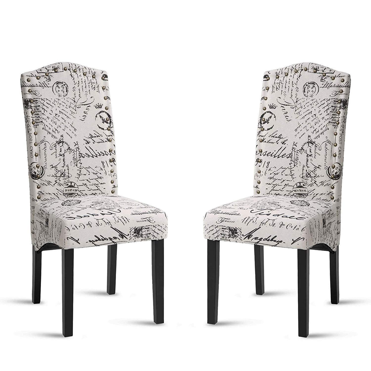 Merax Script Fabric Accent Chair Dining Room Chair with Solid Wood Legs, Beige,Set of 2