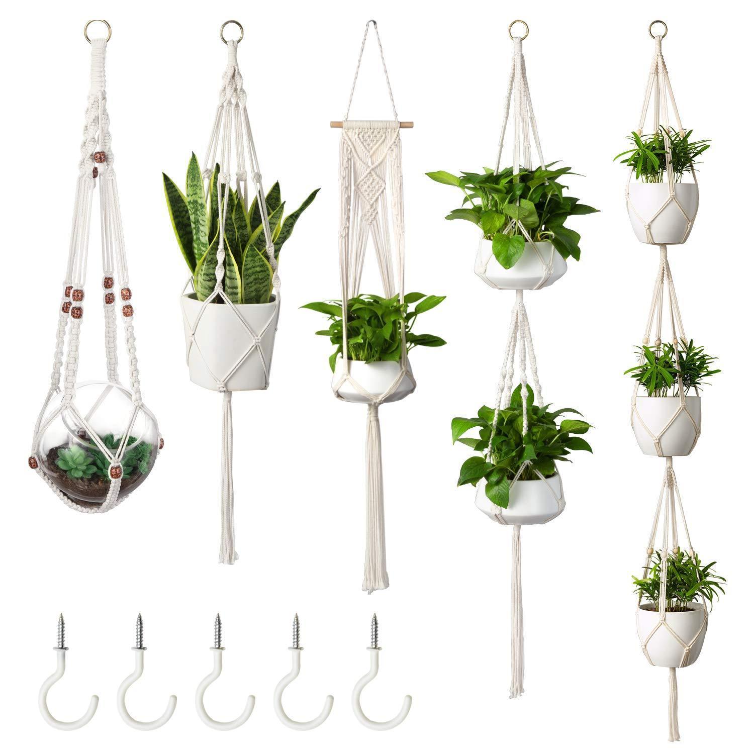 • 【ADORABLE 5 Macrame Plant Hangers SET】 Fall in love with this collection of uniquely Plant Hanger shaped in equally an equally varied range of sizes. Selected shapes and Unique design are sure to complement any decor.(Plants and Pots Not Included)