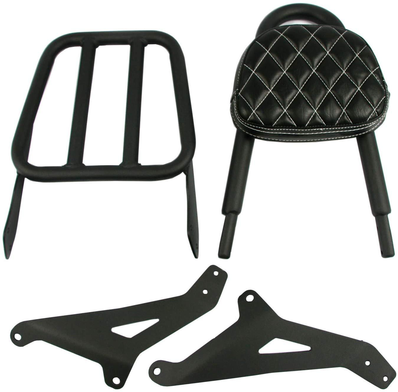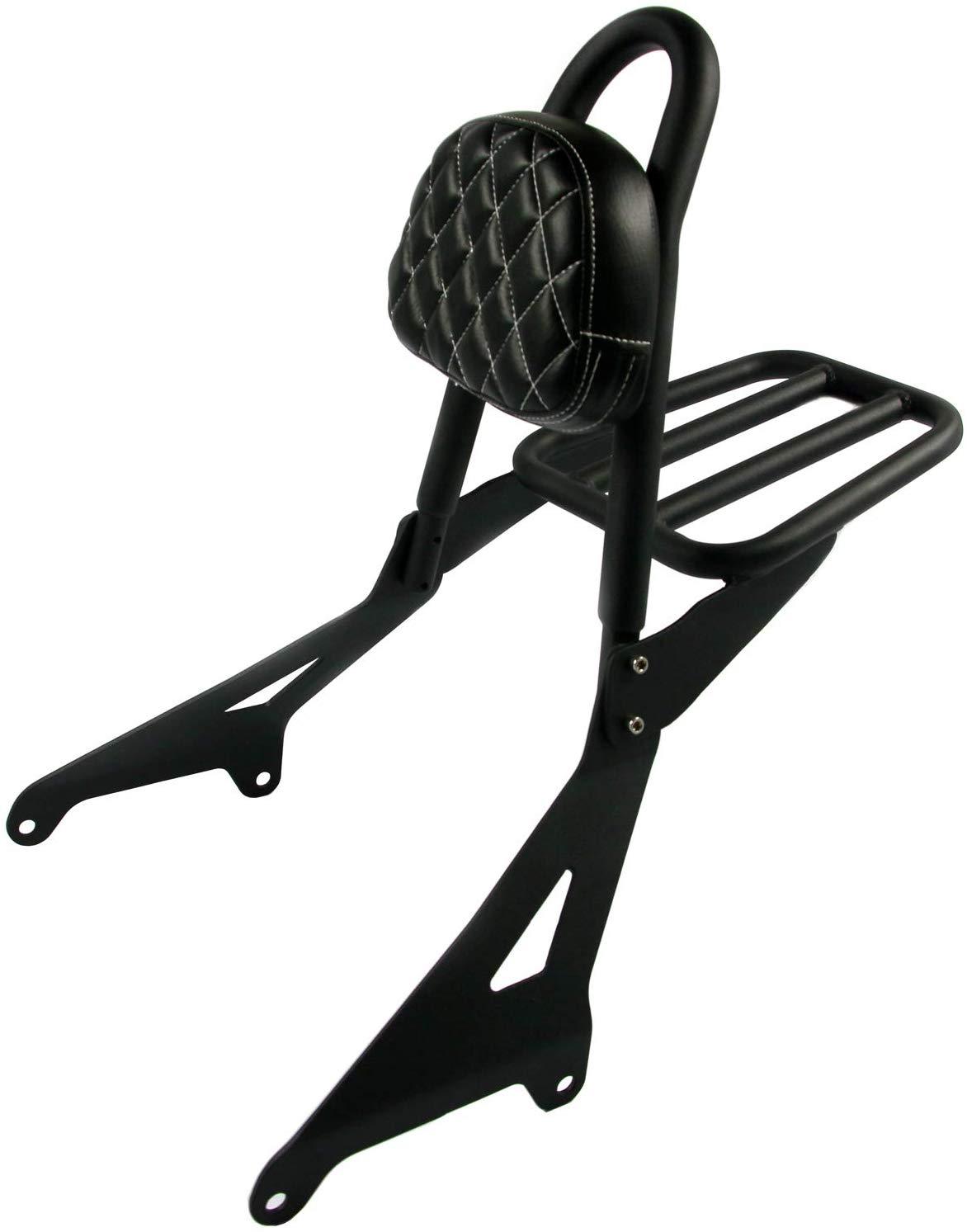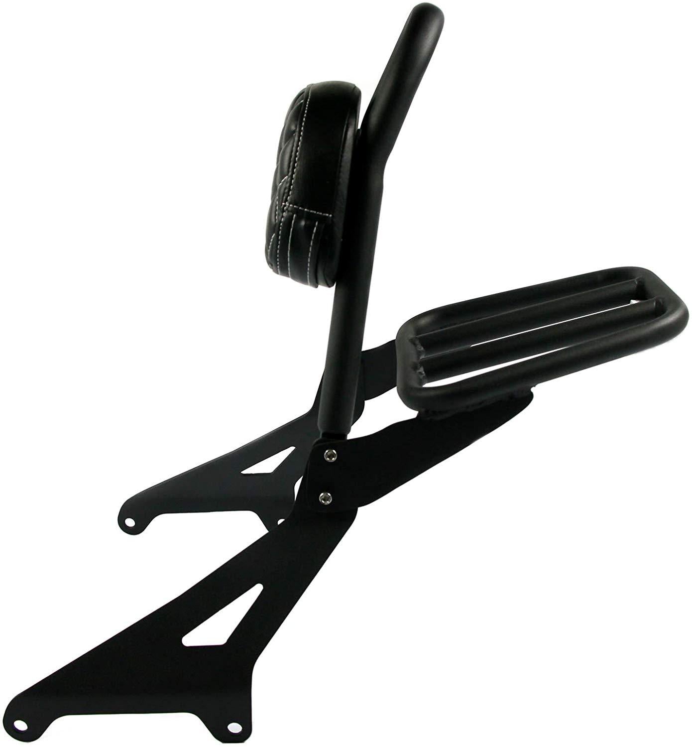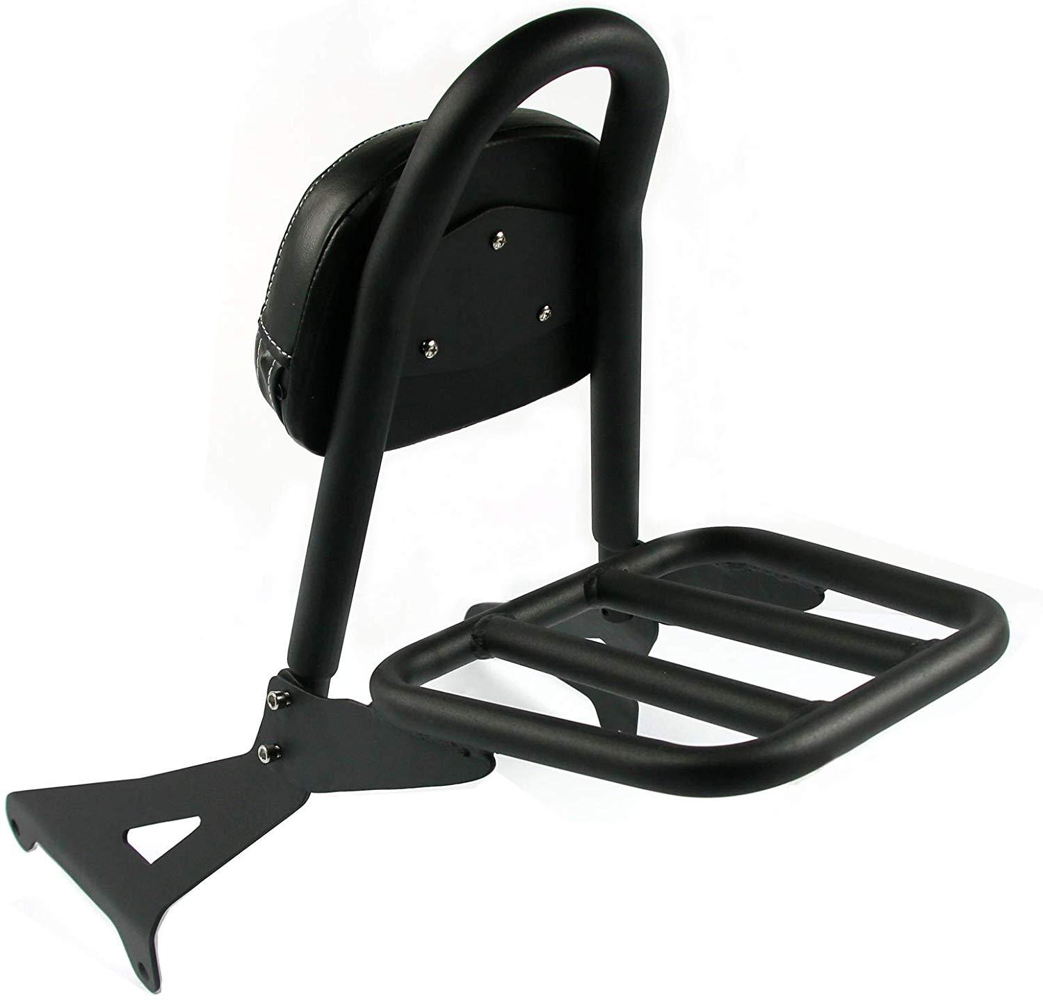 • Type: Backrest Sissy Bar & Luggage Rack ; Color: Black ; Material: Synthetic Leather+Foam+Iron,backrest pad filled with soft foam, soft enough to provide full low back support,extremely comfortable for your back,improve rear passenger comfort in the long-haul trip.