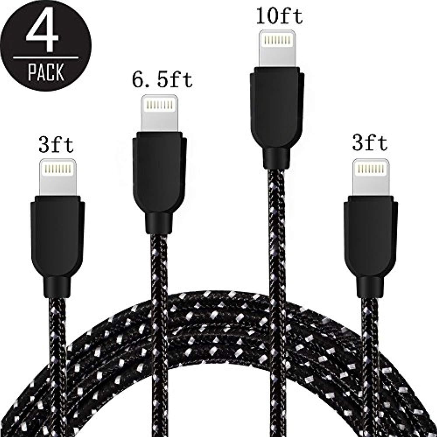• [Various Choice ]: 4 pack Lightning Cable in assorted Lengths(3FT 3FT 6.5FT 10FT) is the ideal length for usage at home, in your office and more places. Never worry about not having sufficient reach from your USB charger cable.