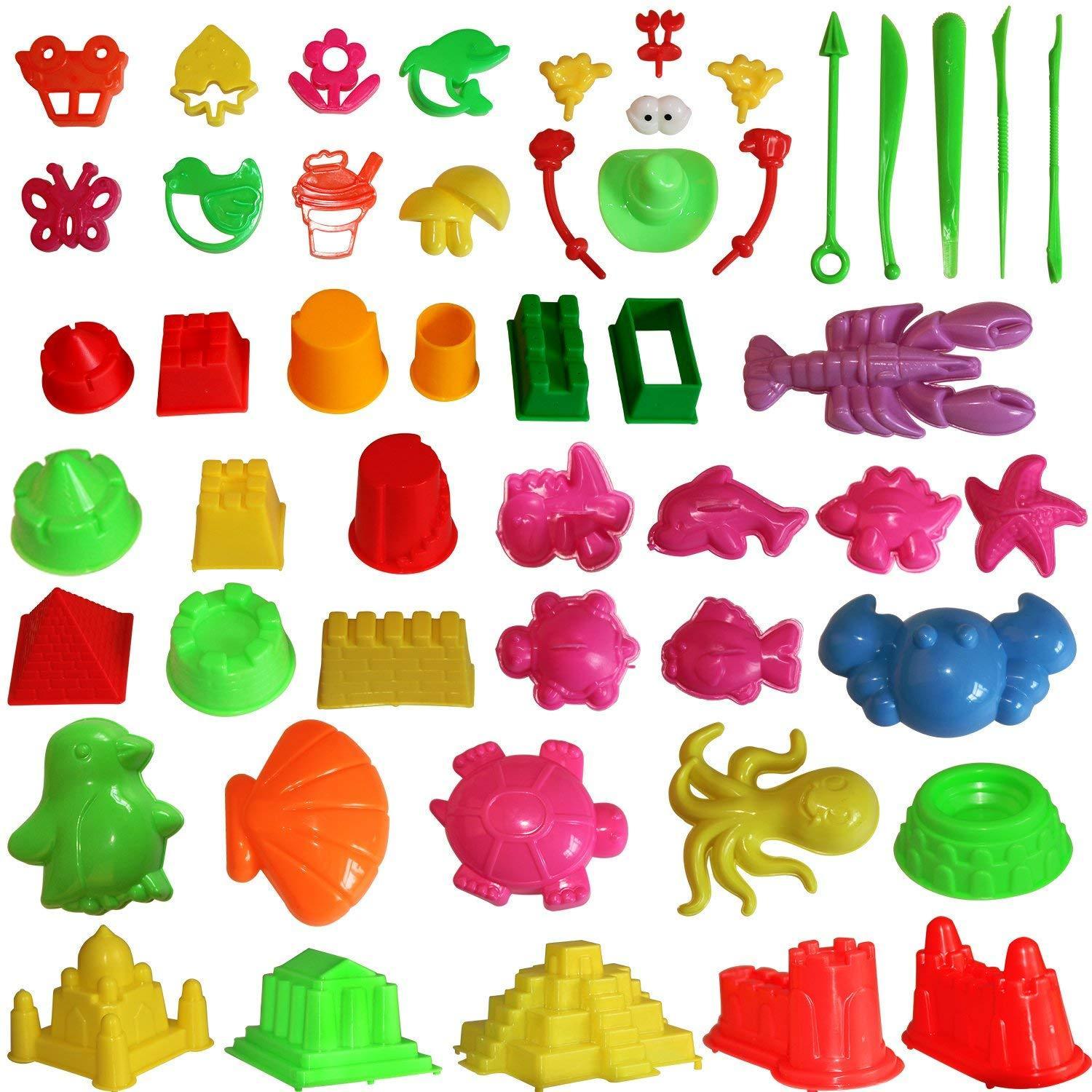 • Includes: 6 big Castle Molds and 6 Small Mold , 6 Sealife Forms ,8 Animal Forms , 5 Building Forms , 7 Piece For A Funny Toys , 4 Piece Mold Tools (Color & Style Varies)
