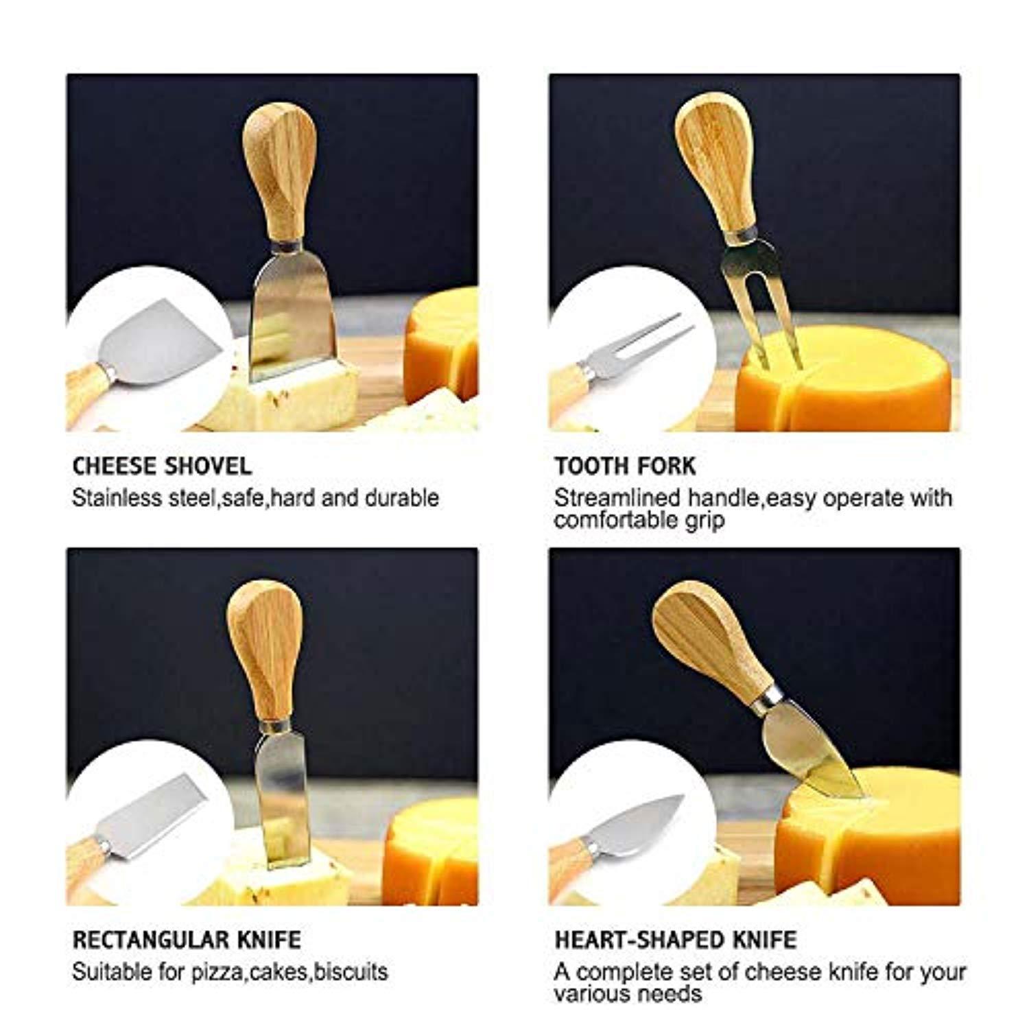 • 【Completely Hidden Drawer and Anti-slip Bottom Feet】Our latest cheese board and knife set has completely hidden drawers which will not affect the use of other areas when open it. At the same time, there are 4 stainless steel knives and tableware in the drawer for easy access and collection, which will help the cheese board to have more space to put cheese, bread, biscuits.The cheese plate has 4 anti-slip bases on the back, which can be prevented from sliding on the table, keep more firmness
