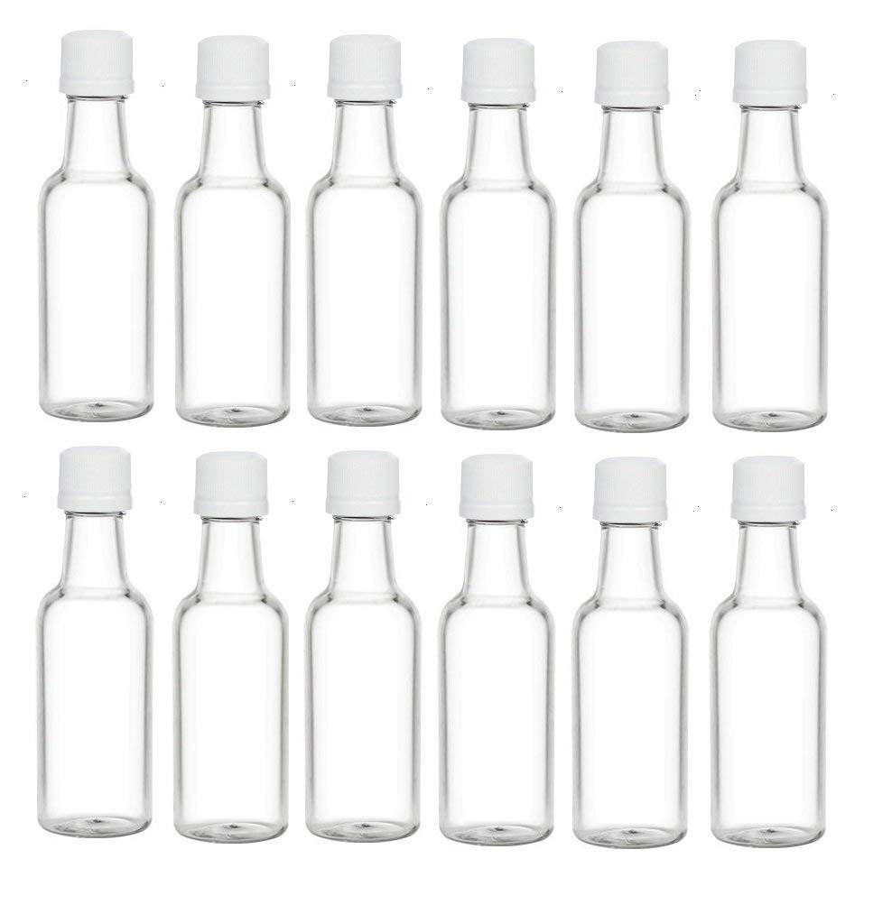 Nakpunar Brand 12 high quality plastic liquor bottles with your choice of tempered lids. 1-1/4 "wide, 4-1/4"...