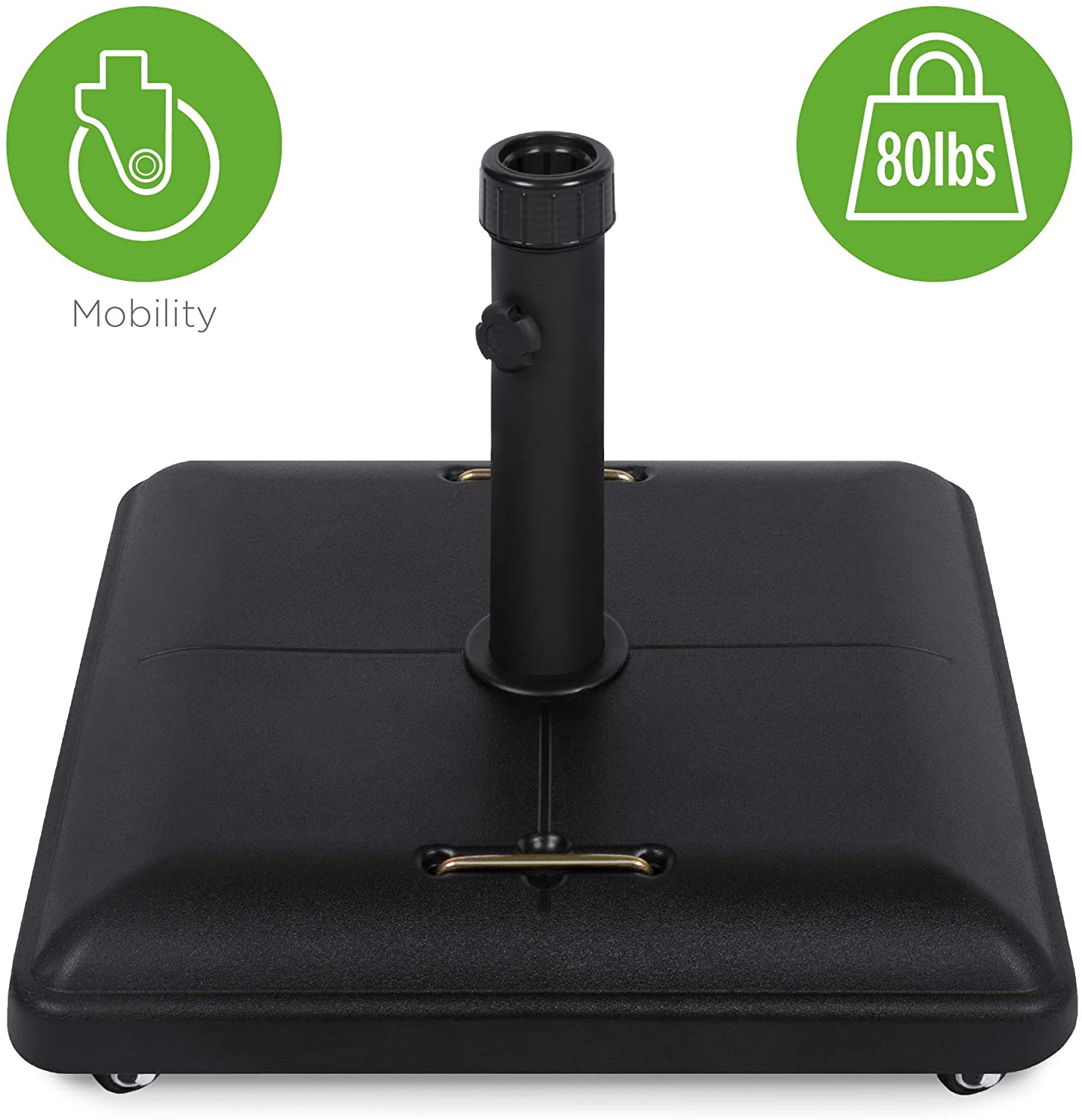Nature's Blossom 81lb. Heavy Duty Square Concrete Rolling Patio Umbrella Base Stand w/Locking Wheels