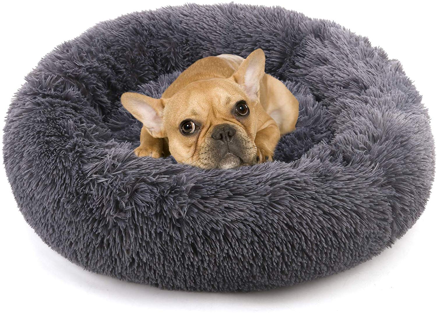 Nest 9 Donut Dog Cat Bed, Soft Plush Pet Cushion, Anti-Slip Machine Washable Self-Warming Pet Bed - Improved Sleep for Cats Small Medium Dogs (Multiple Sizes)