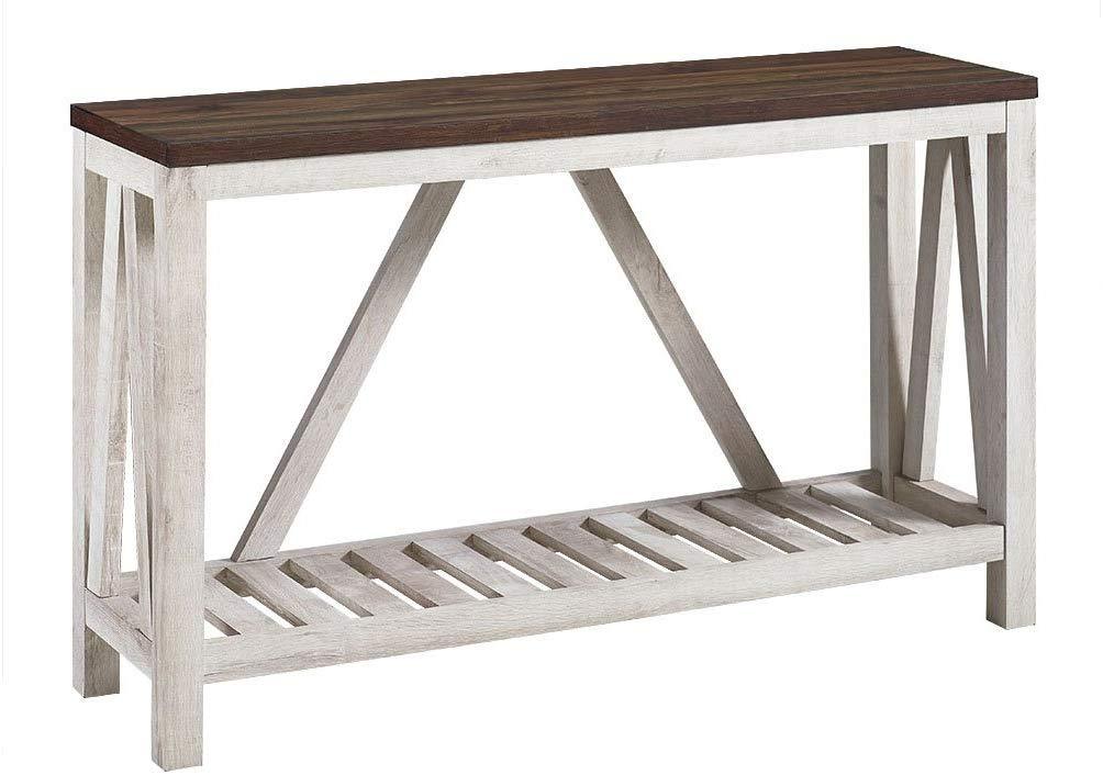 New 52 Inch A-Frame Rustic Entry Table - Dark Walnut Top with White Oak Finish