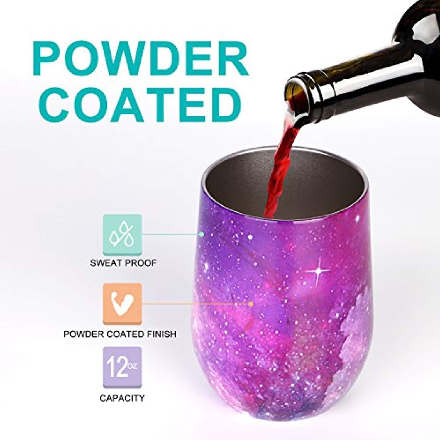 NEWBEA 12 oz Wine Tumbler with Lid, Double Wall Vacuum Insulated Stemless Glass,Stainless Steel Wine Cup Perfect for Wine,Coffee,Drinks,Champagne,Cocktails