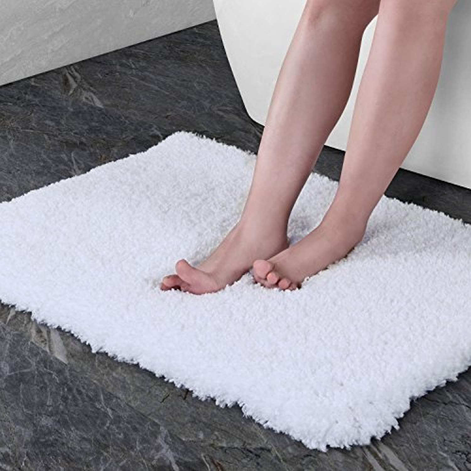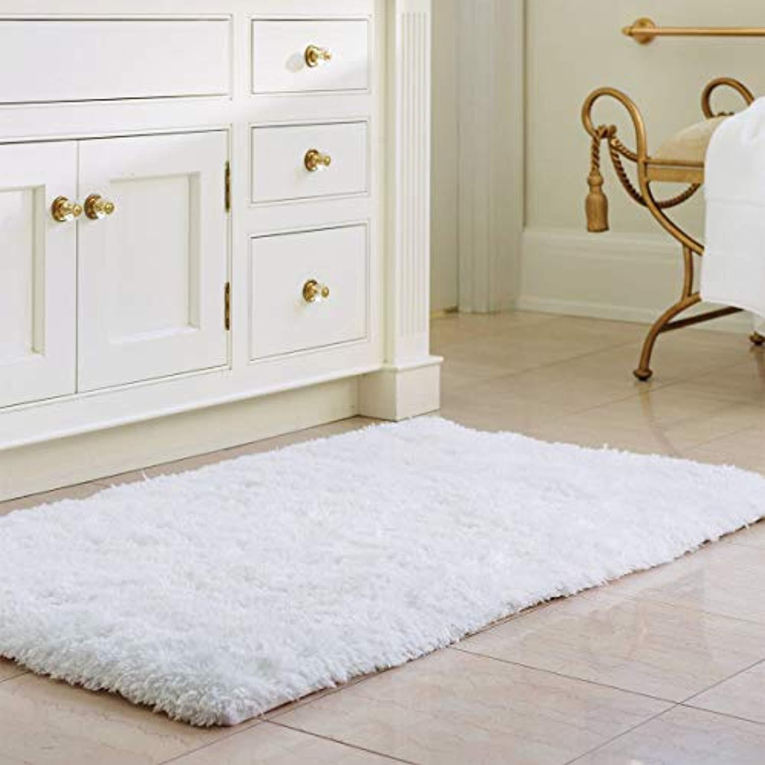 Norcho 31" x 19" Soft Shaggy Bath Mat Non-slip Rubber Bath Rug Luxury Microfiber Bathroom Floor Mats Water Absorbent White